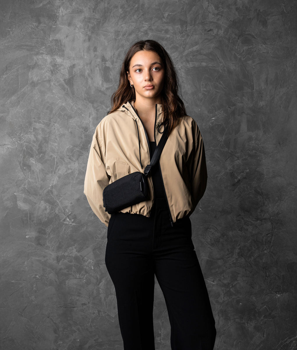 Inside, 4 card slots keep cards organized, while a hidden zip pocket secures valuables. Two internal slip pockets handle small items like receipts or earbuds. RFID-blocking technology protects cards from digital theft, and water-resistant fabric combined with YKK AquaGuard zippers shields contents from the elements.