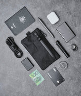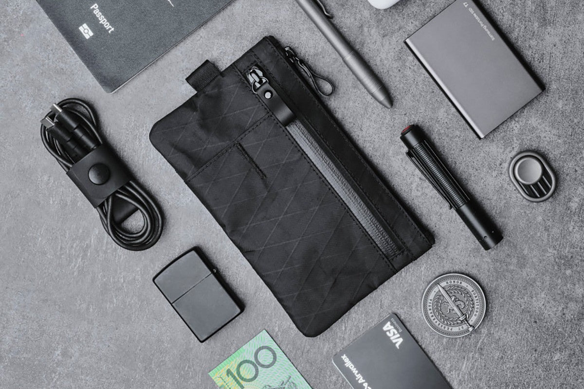 The Zip Clutch lets you keep the essentials always at hand. It features 2 slots on the frontside for various EDC gear such as torch or multitool. The backside has a larger pocket that fits e.g. a passport or phone. An internal divider with 3 pockets inside keeps everything organised, while waterproof YKK zippers and weatherproof fabrics keep everything safe. Comes with a removable hand strap.