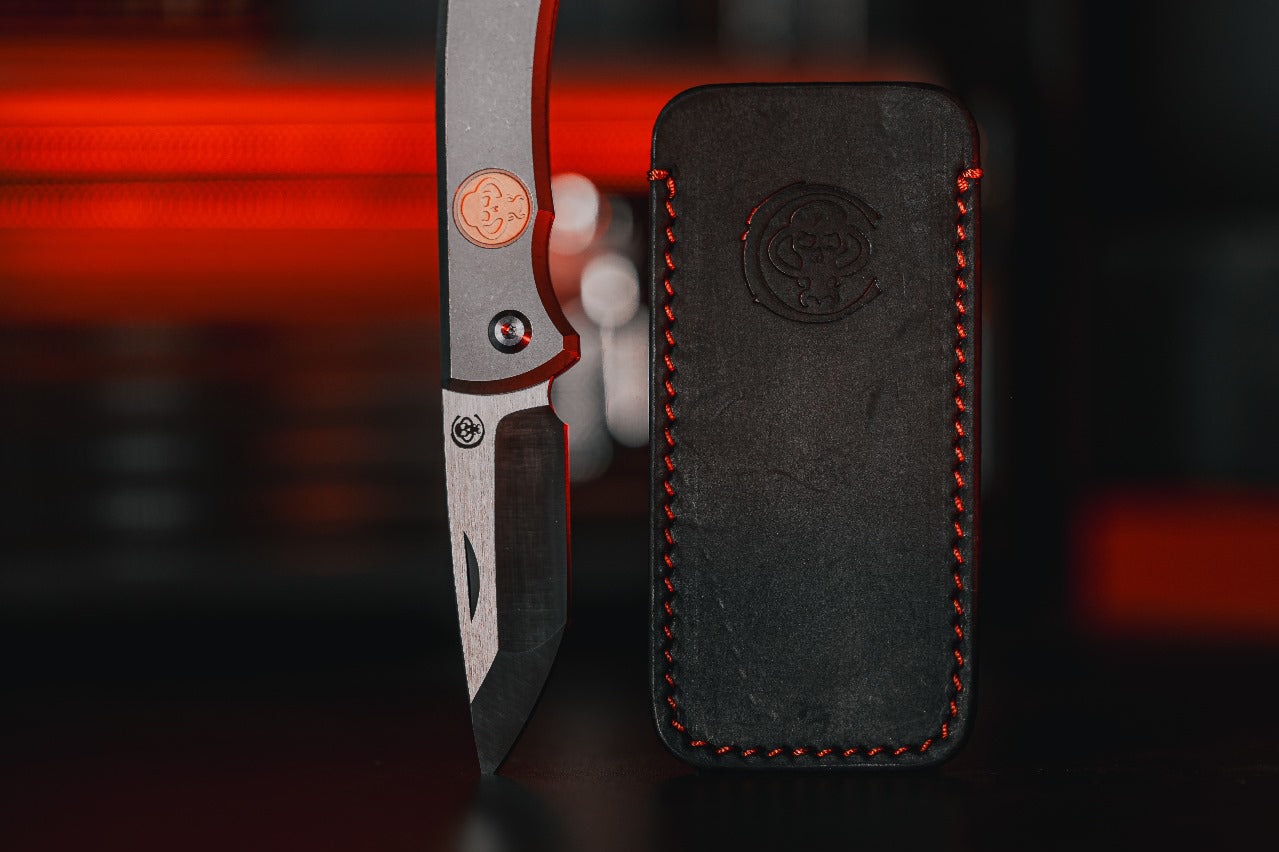 This new design by Ramon stands out for its small size compared to his other models. While this model does not include the iconic pocket clip, the logo is transferred onto a stylish leather carrying pouch. The Slip Joint also features both a half stop and a full stop, as it is a non-locking knife. Stonewash titanium handle with blasted copper inlay.