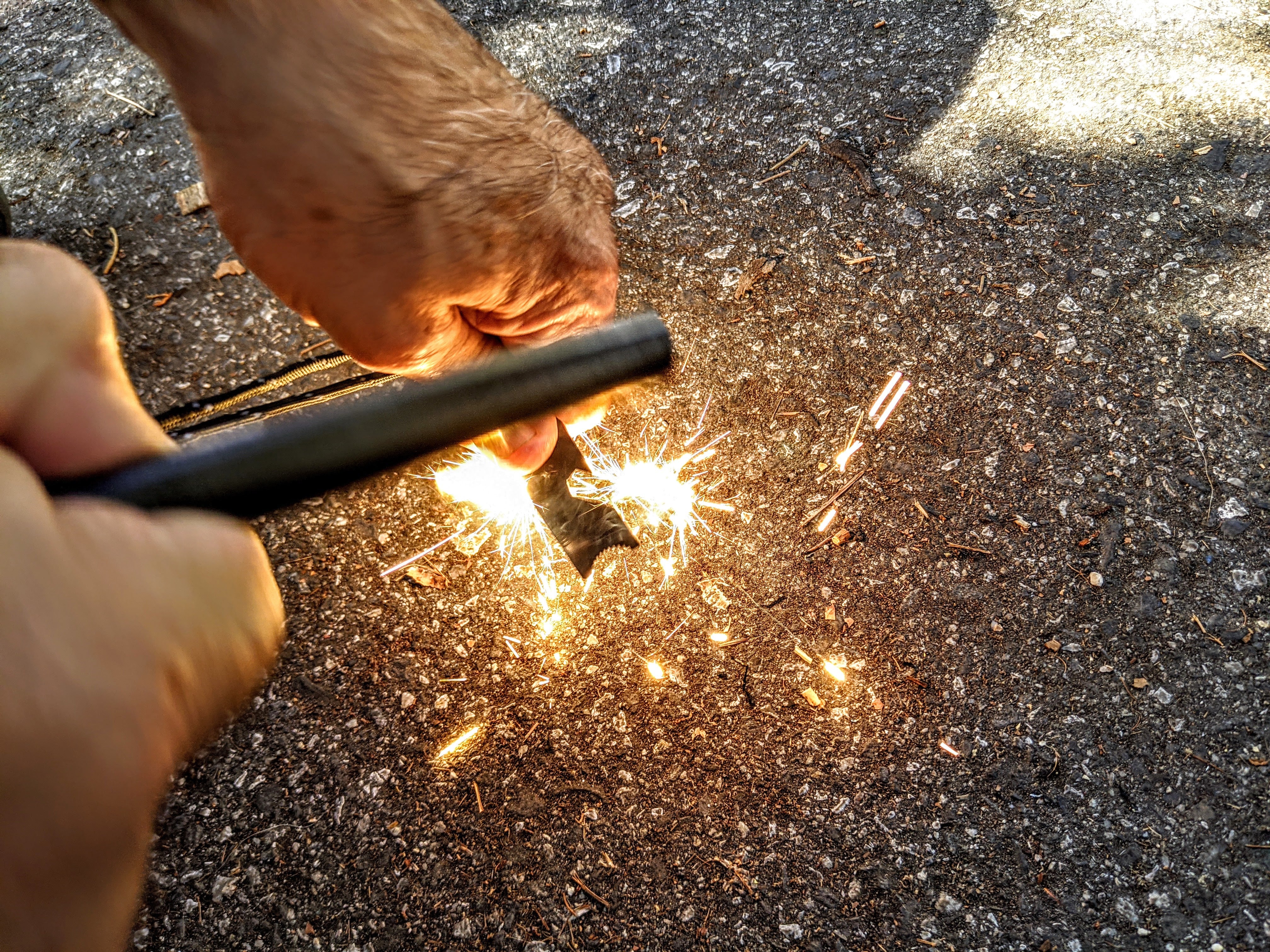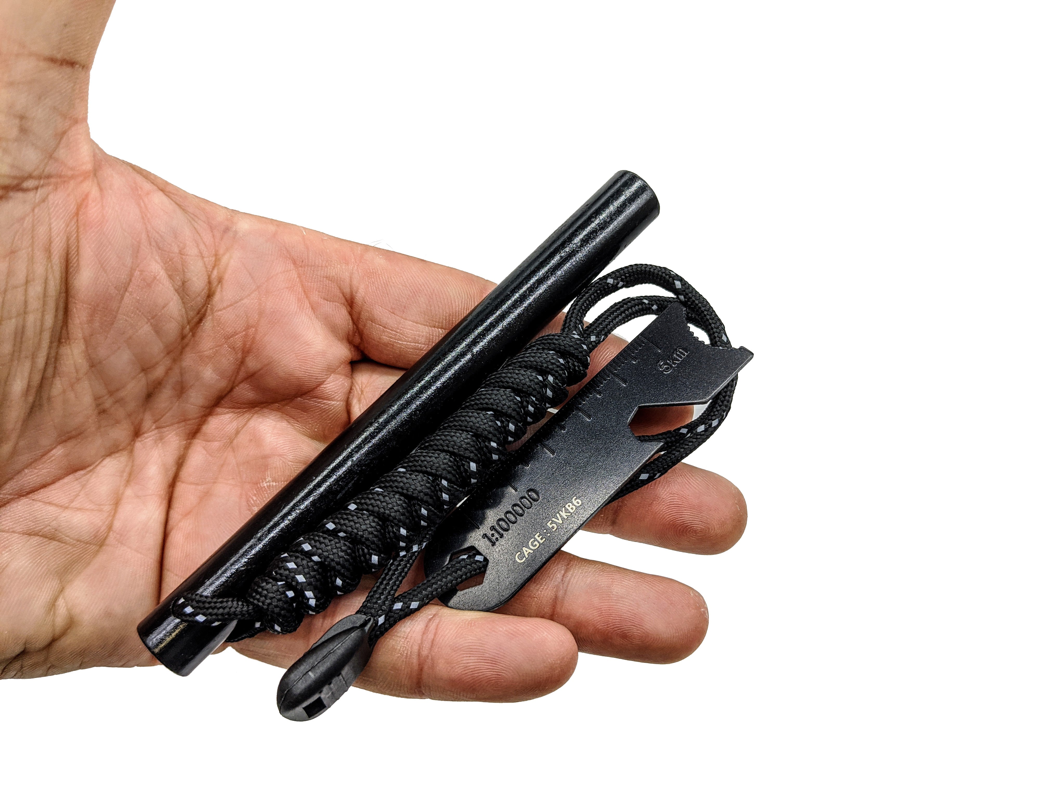 The Massive Ferrocerium Rod comes in a collapsible tube that can expand to hold tinder as well.