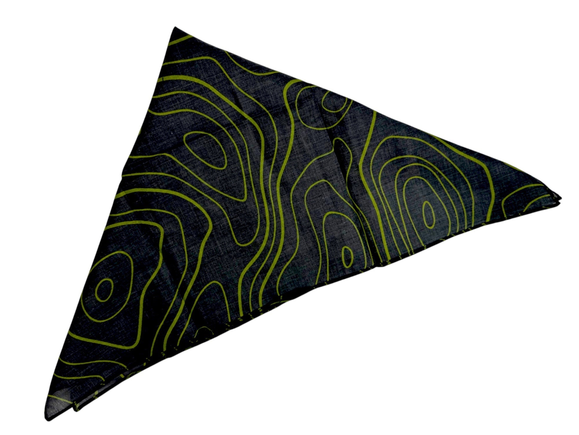 This printed 100% cotton bandanna is 56 × 56 cm and serged on all four sides!