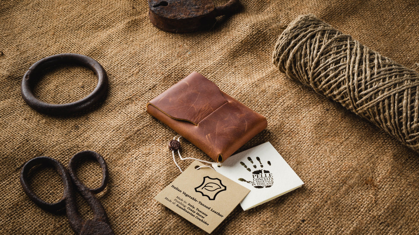 This slim card holder is made of premium quality Vegetable-Tanned Crazy Horse-style leather from Italy. It can hold up to 10 cards in the main compartment and features a pocket on the back for easy access to your cards or cash. Its slim profile does not include any buttons or rivets, making it sleek, simple, and reliable.