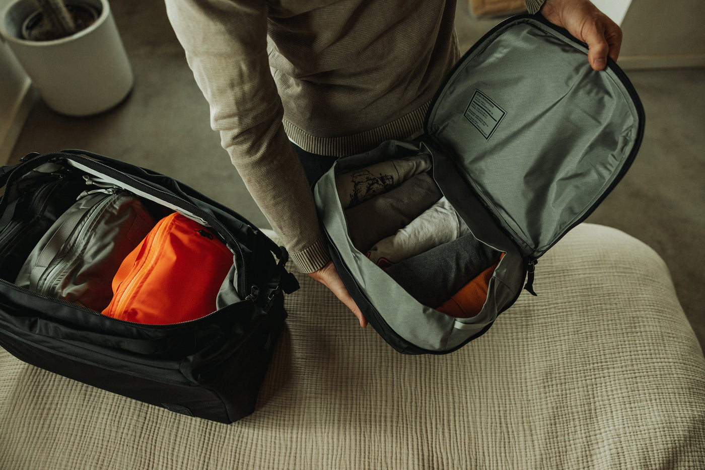TPC10 is sized for larger clothes and gear for an organized life on the go. With a unique compression cinch collar, it is built to be overstuffed and packed down. A quick-access slim accessory pocket lies on the exterior for stashing passports, laundry bags, or other travel essentials. Designed with a durable yet lightweight textile for dual purpose as both a packing cube and a gear cube
