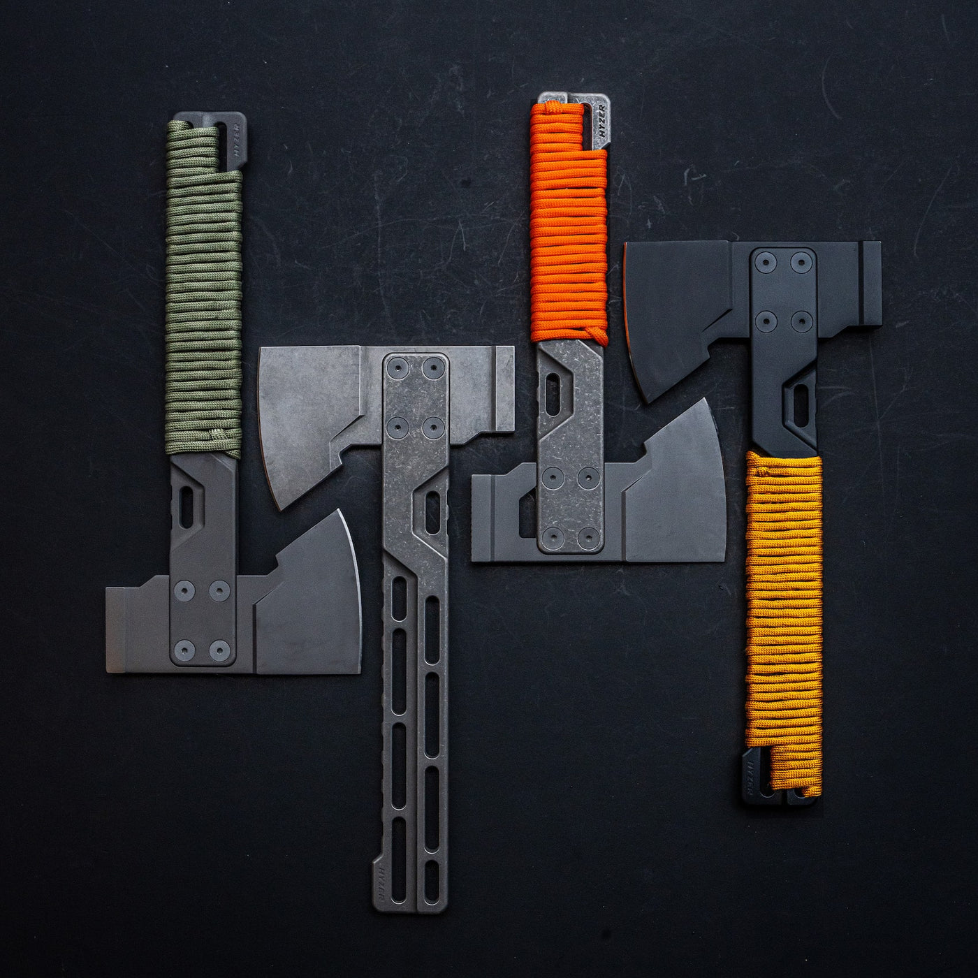 Perfect for camping, backpacking and hard-use, the Hyzer has an incredible strength-to-weight ratio by utilizing titanium known for it's ability to dampen vibrations as seen in the premium hammer market. The Hyzer pairs great with any paracord wrap giving you a more comfortable chopping experience.