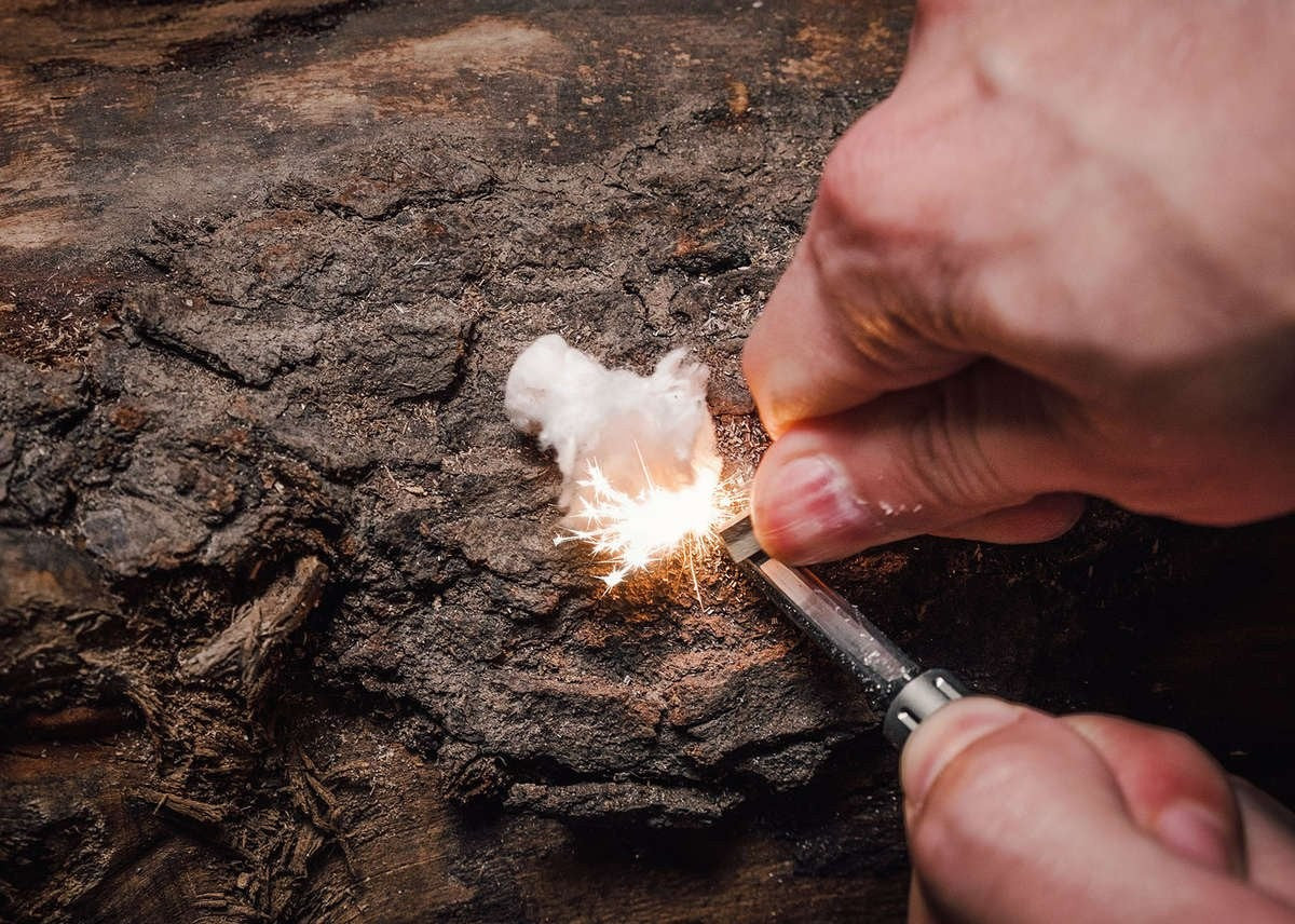 It's made from dry-treated cotton (clean to the touch) and is extremely easy to light even with a small spark. It will burn for 1-2 minutes. Oftentimes an open flame is needed only for a few seconds to light a tinder bundle. Snuff out the quickLIGHT™ and reuse it later.