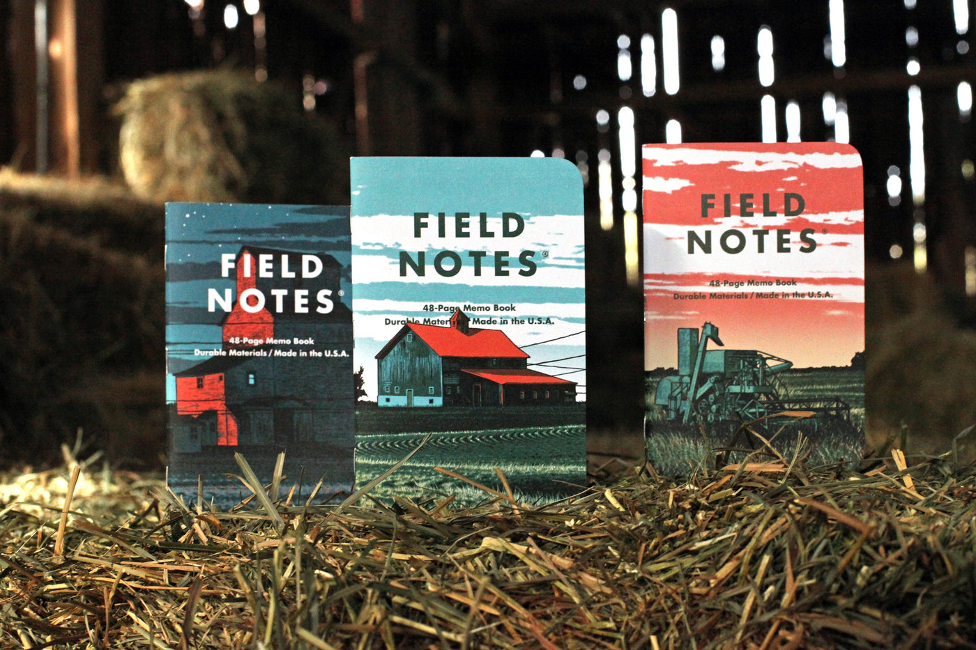 Putting this all together, Field Notes asked artist and screen-printer Dan McCarthy, who illustrated three of the covers from the National Parks Series, to create a rural panorama across the covers of three books, each depicting a different time of day: sunrise, midday, and evening. The result is a lovely combination of theme, color, and utility that really captures the spirit of American farm life.