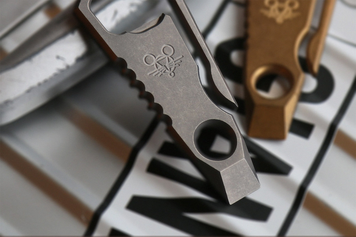 While it's not a knife, the Titanium Caplifter / Prybar tool is one sharp design. Perfect for use as a key fob by adding a split ring, so you can hang your keys in your pocket using the integrated side clip. And when it comes time to pop the cap off of a cold drink, it'll be your go to opener.