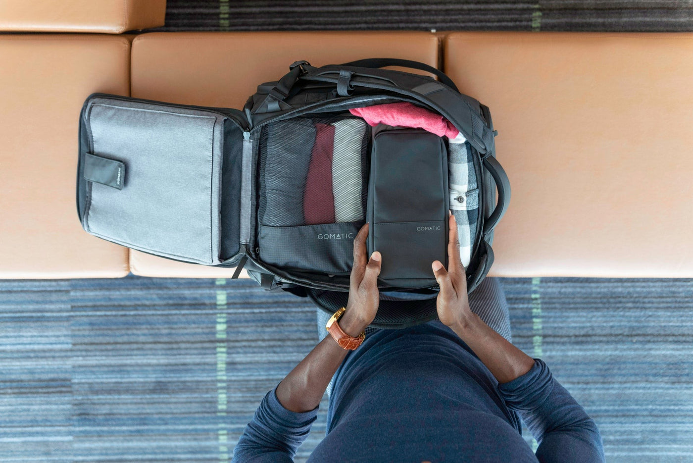 The Gomatic Travel Bag 30 L is the perfect go-anywhere, do anything bag. It is made with durable, water-resistant materials and zippers. The patented strap system allows you to go from duffel to backpack carry for those times when you need more flexibility. The shoe compartment has a ventilated door with a water-resistant flap allowing you to choose if you want to keep water out or allow for ventilation.