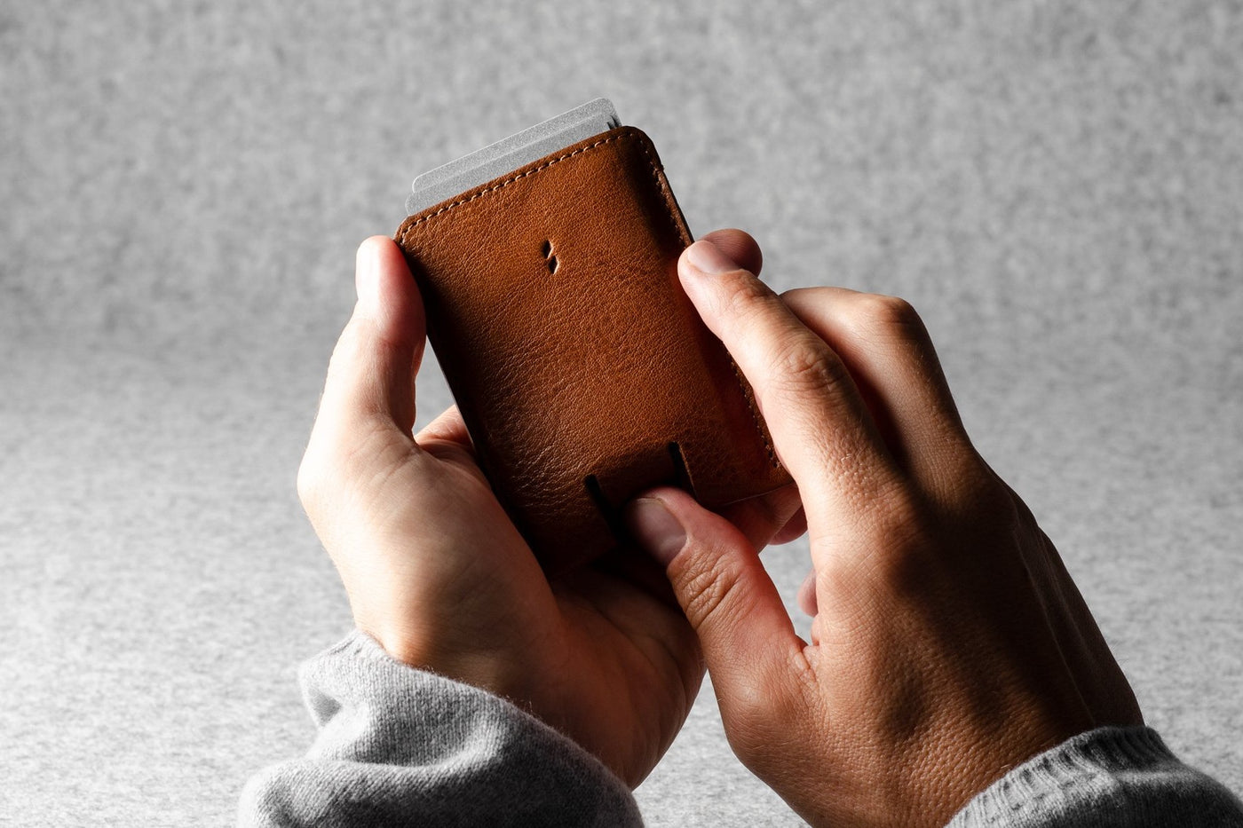 You often need to push in order to get things done. Such as pushing the door open, push for a pay rase or push to get heard. The Push Card Case is designed to hold around 5 cards and bank notes. It features a pocket on the back of the case and two conveniently placed slots so you can push your cards out.