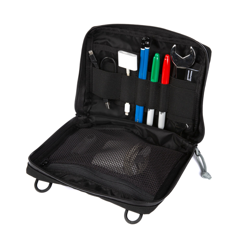 The ORG_M_04 is a thoughtfully designed, MOLLE-compatible organizer that can be attached to another pack or worn as a crossbody sling with separately sold shoulder strap. Features an interior zip pocket and elastic organization grid for tools, pens, chargers, and the like.