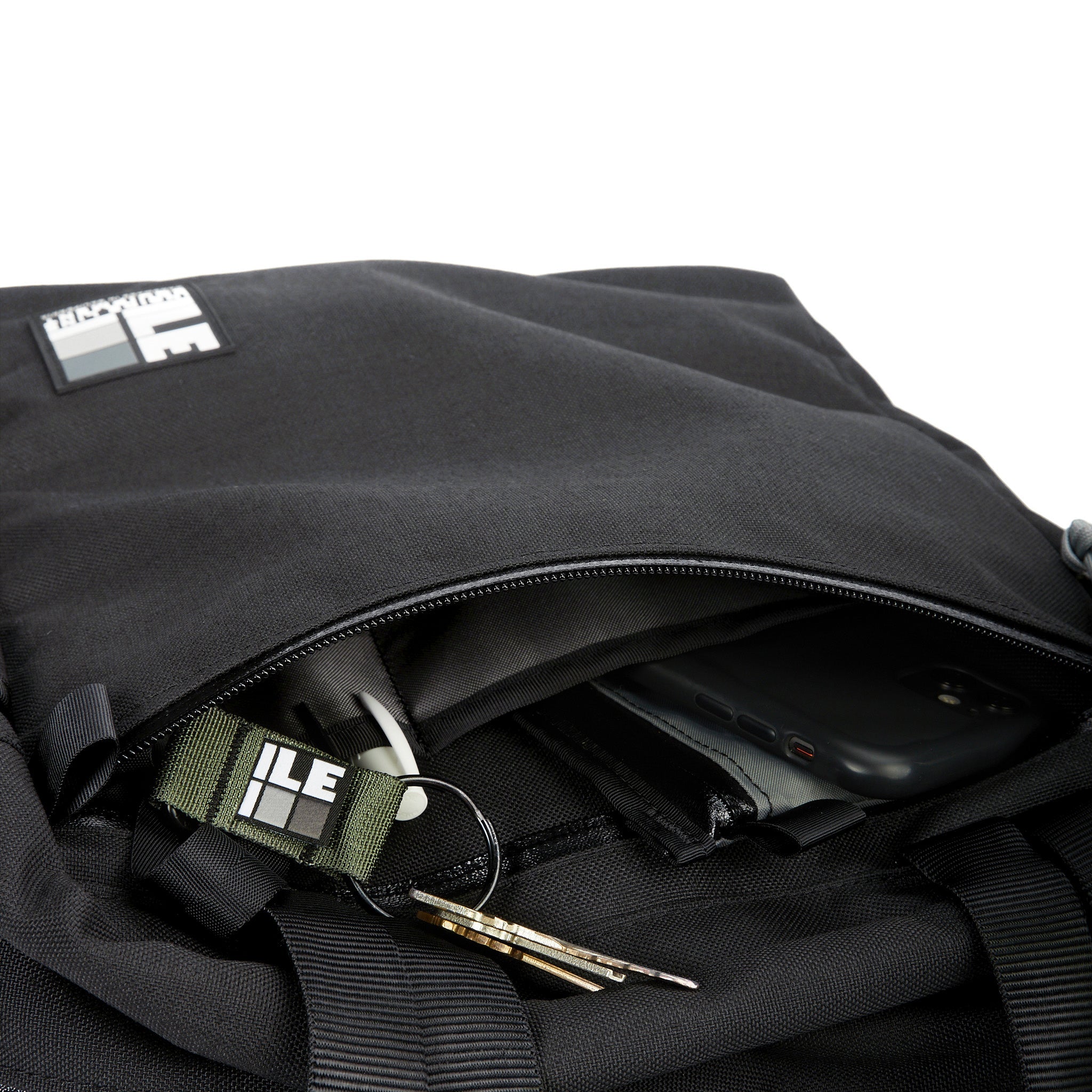 - Weather-resistant exterior pocket with key tether and internal pockets for organization