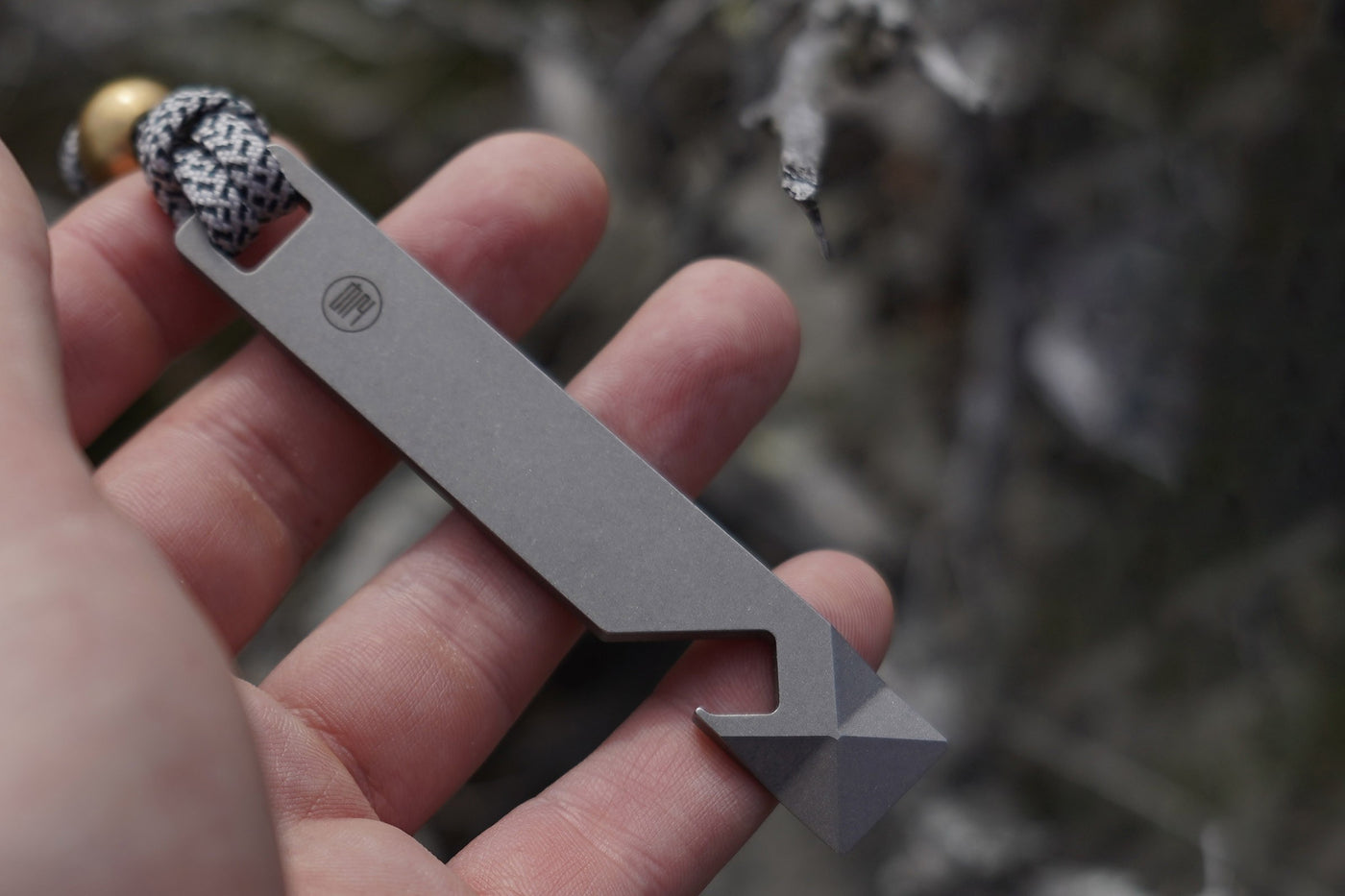 Pike is a minimalistic pry bar with many functions. It features three edges for scraping, prying, and opening carton boxes. The rectangular lanyard hole doubles as a standard 1/4" bit holder. One of the most unique functions of Pike is the file on the reverse side, which can be used for light filing and honing work. All Pike are sold with paracord and a simple bead included.