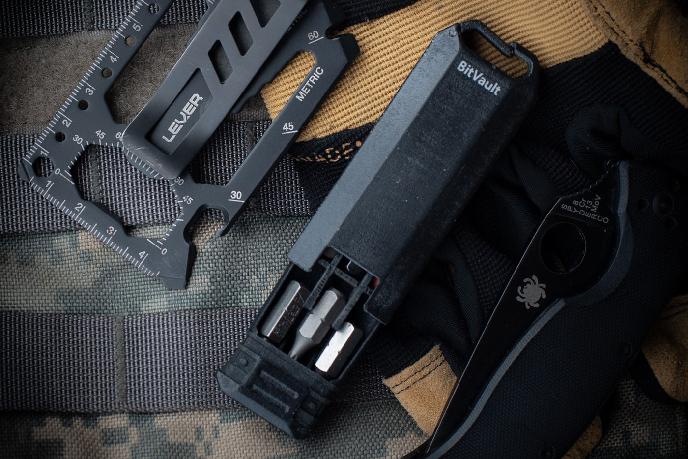The BitVault is a watertight carry case for your small essential items. It doubles as a compact EDC screwdriver that holds up to six standard 1/4" hex bits. Perfect for quick projects or small adventures like cycling trips where you need a few key bits and some other small items.