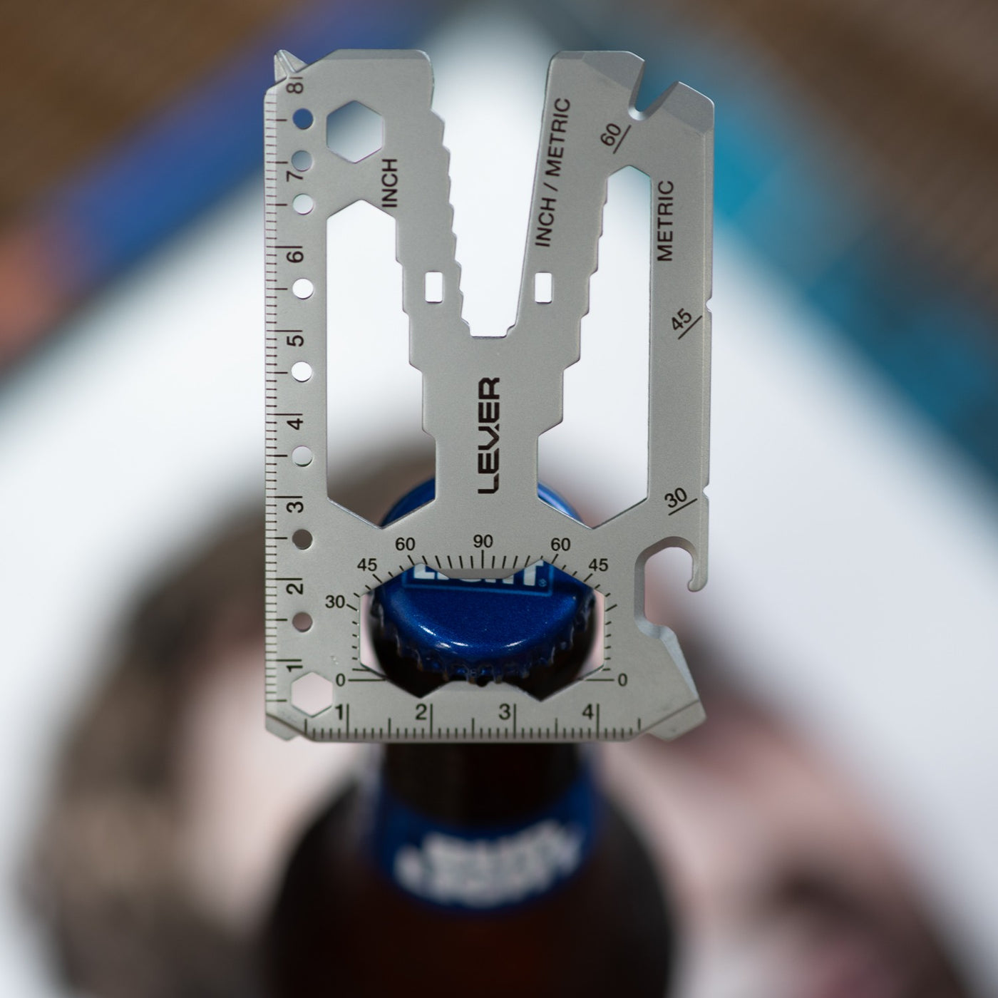 Every feature on the Toolcard Pro was designed for optimal functionality, from the bartender-style bottle opener to the screwdrivers, which align with the opposite corner for visual guidance. The cord cutter is safely nestled in the can-opener recess and the outside edges are smooth, so the card feels great in your hand and won’t snag in your wallet.
