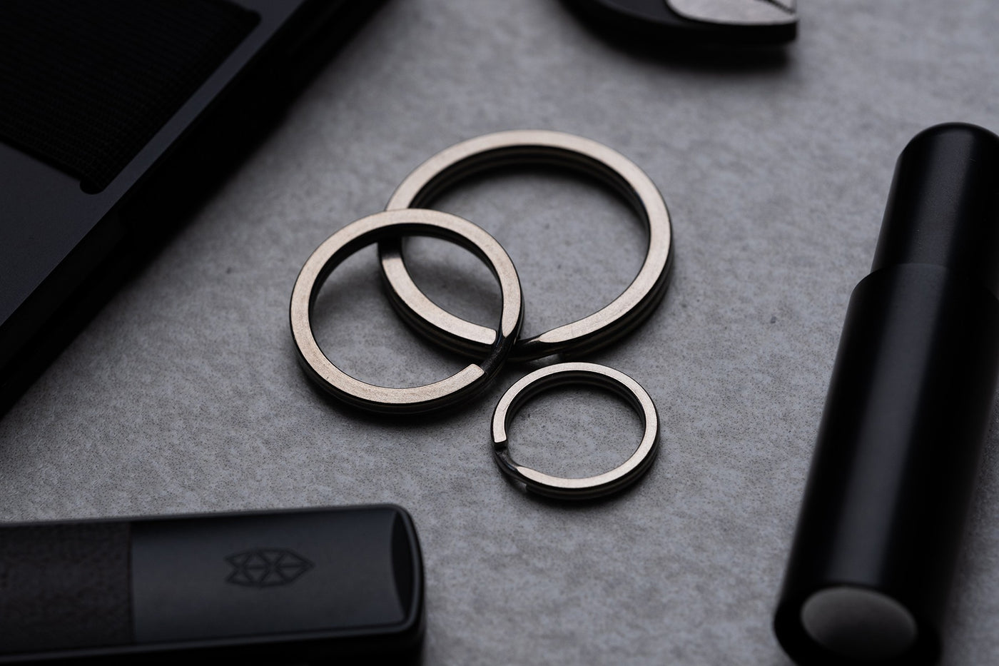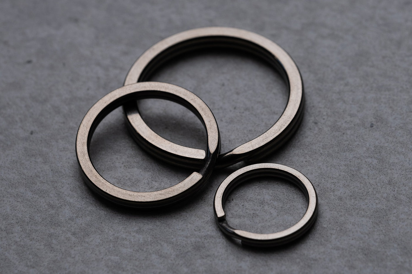 This flat style Titanium keyring brings lightness and sophistication to your keys. It's quieter than stainless steel, so you'll notice less key jingle as well. Available separately or as a 3-pack containing one of each size.