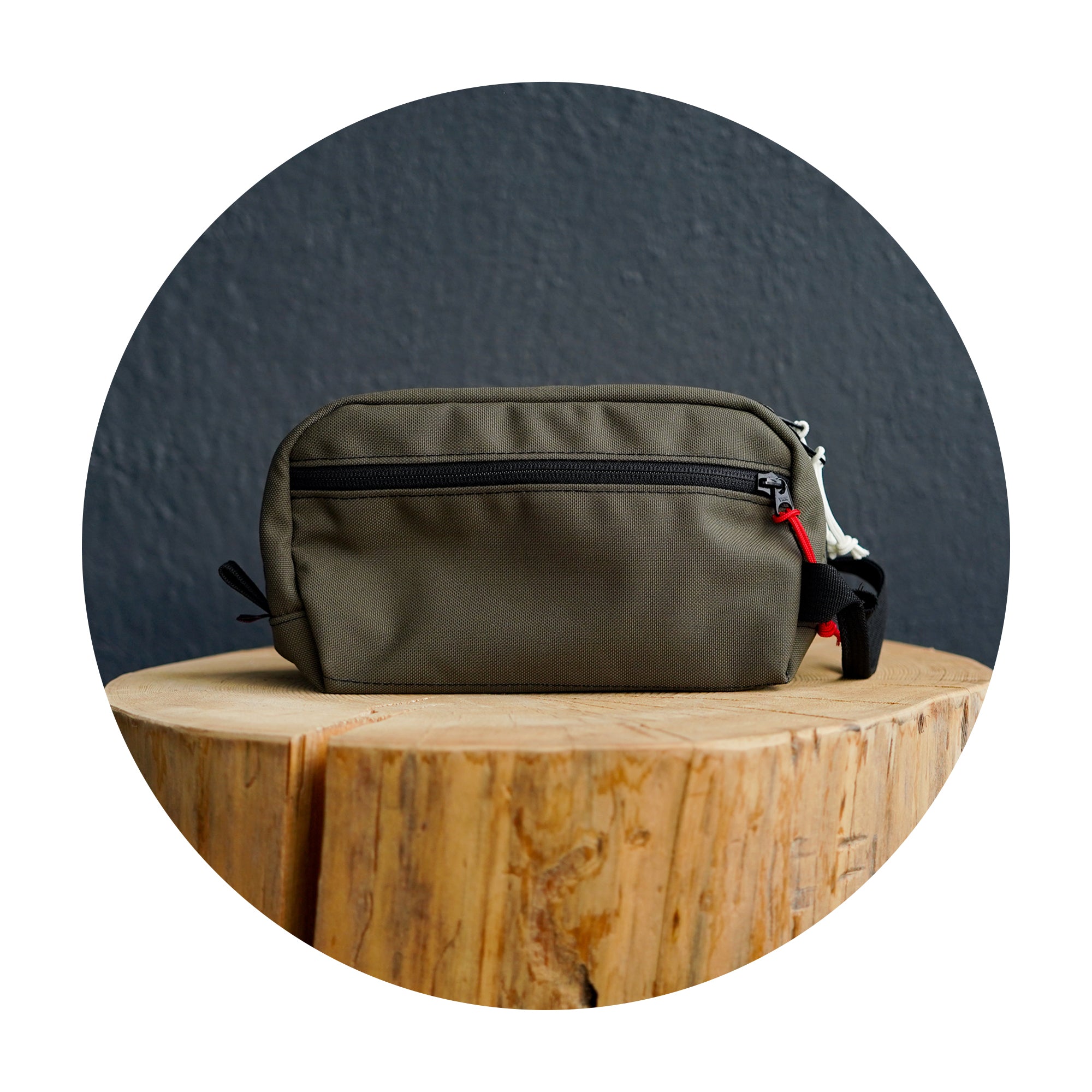 Peak Pouch is designed to be utilitarian and useful pouch to be used as a dopp kit, tool bag or everyday carry pouch. The unique pyramid shape stands tall even when empty. The full length main zipper opens extra wide for easy access. Large carry handle is big enough to hang over door knobs for convenience.
