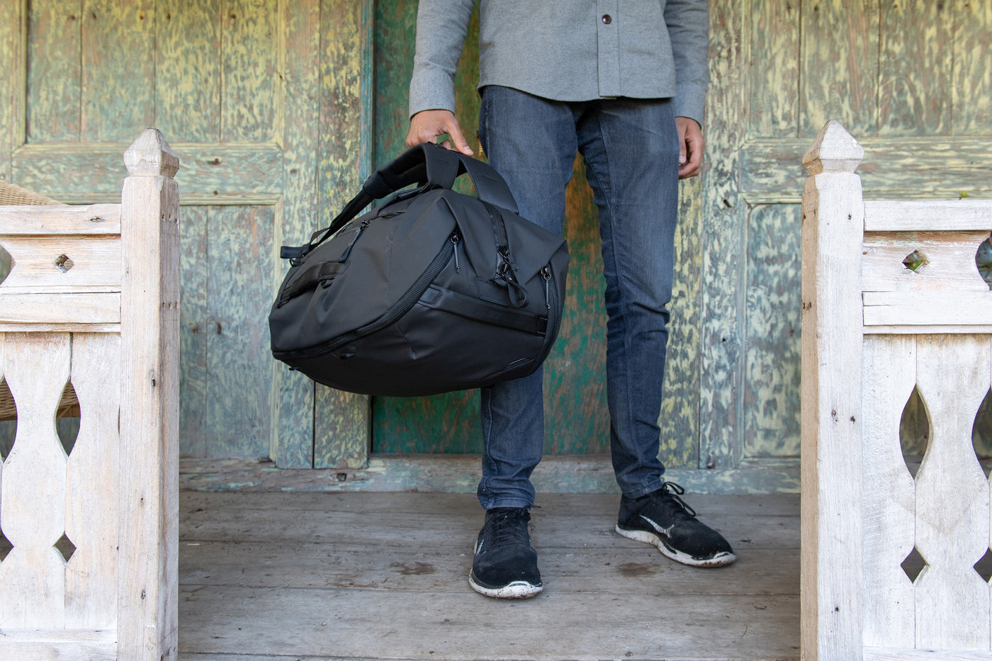 Travel Dufflepack 65L is a capable gear hauler, maximising your carry capacity without compromising comfort or versatility. Ergonomic shoulder and waist straps support the heaviest loads, yet stow instantly beneath magnetically-sealed back panels. Grab handles on all sides of the bag allow multiple carrying options. Integrated expansion zips offer a massive 20 L extra capacity from 45 L to 65 L. A unique main opening features a strong weatherproof zip and ultra-long zip path that gives you more access and visibility than traditional duffels. Internal volume is sized perfectly to fit Peak Design Packing tools (sold separately).