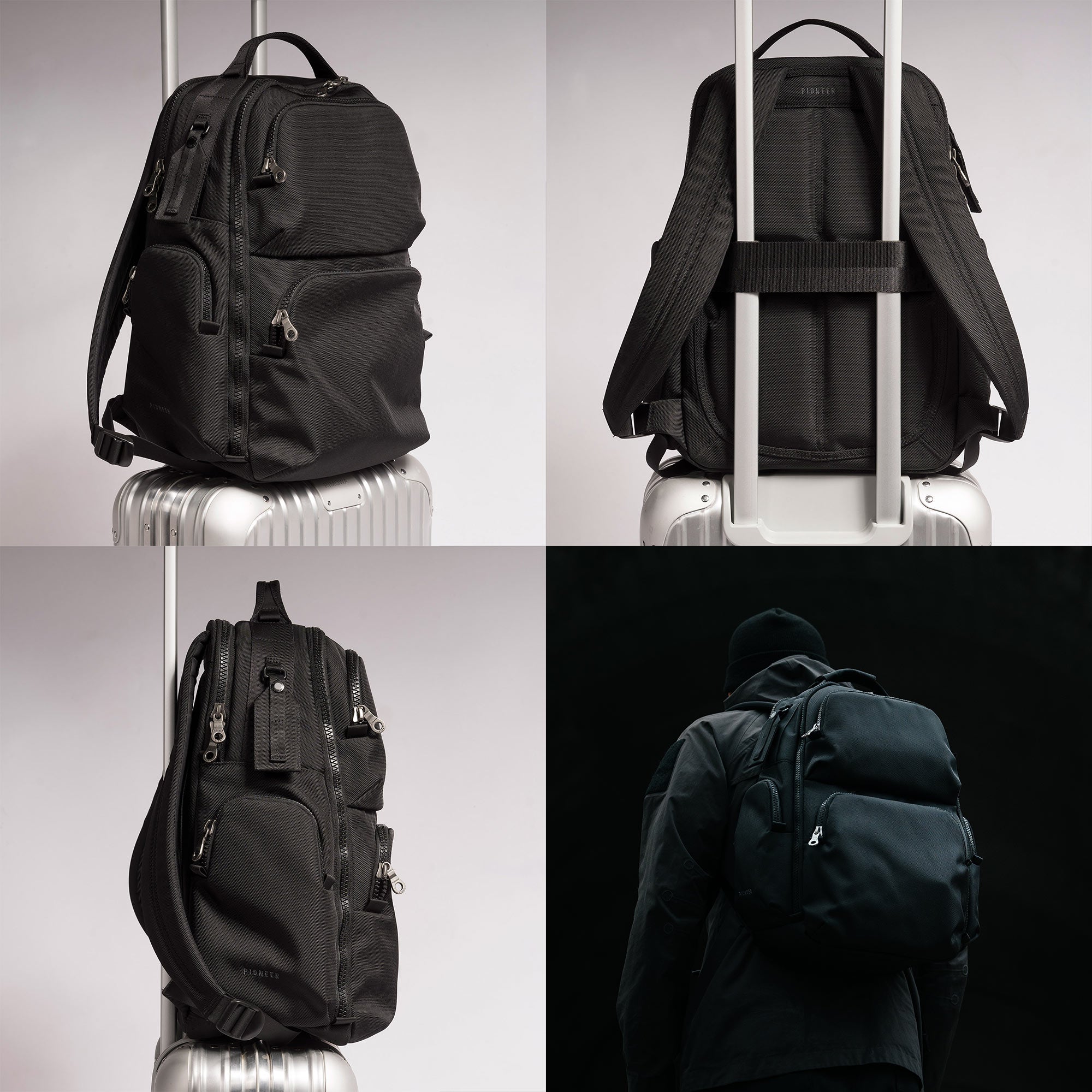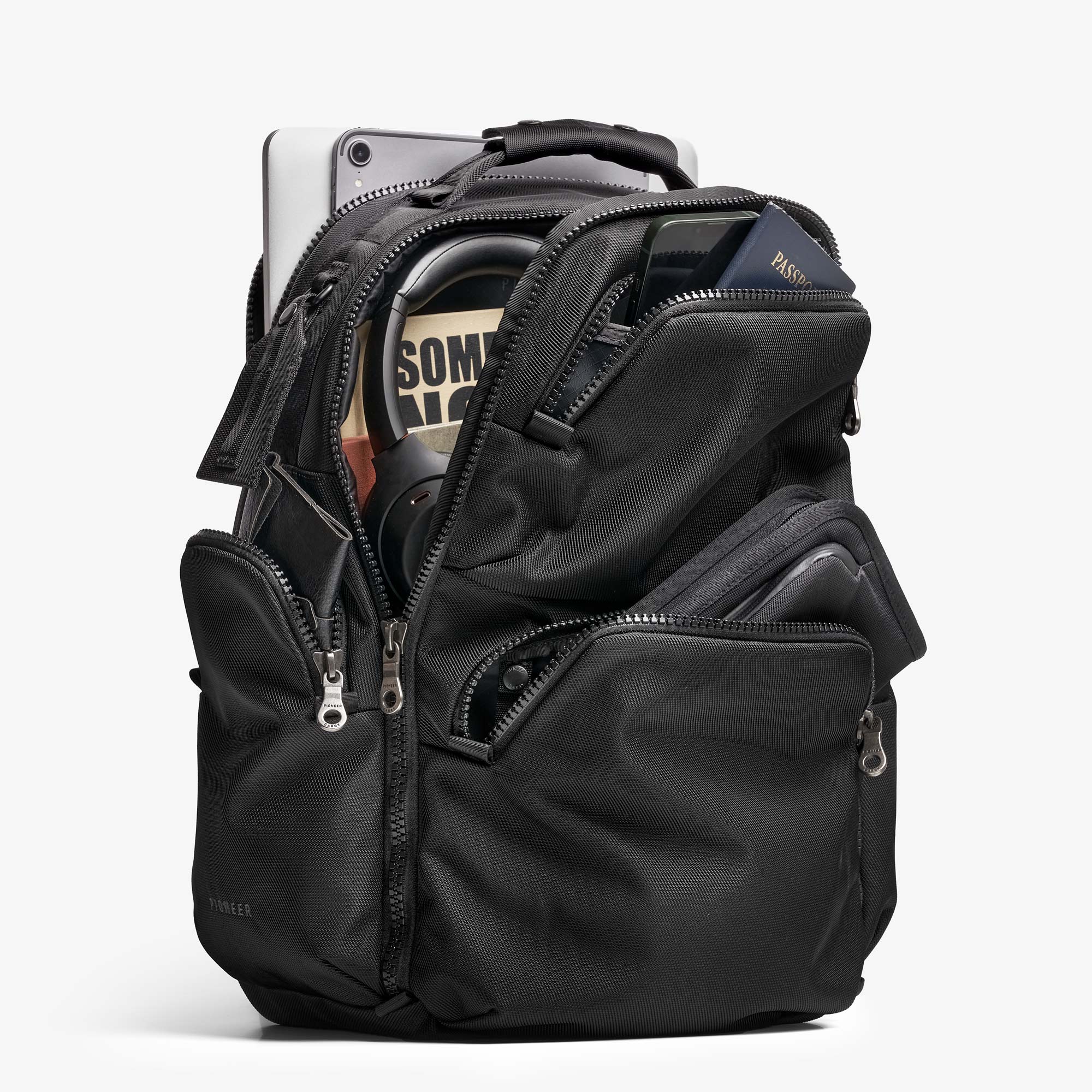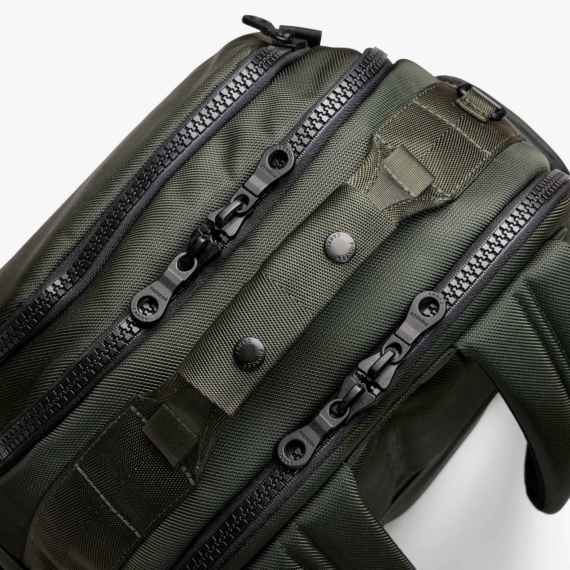 The ultimate travel tool. The Panda Pack (now in its 2.0 version) is the calling card of the seasoned traveller. Large enough for international travel and composed enough to still look sharp. Fits under the seat in front of you, stands up on its own and has a place for everything. Removable luggage tag included.