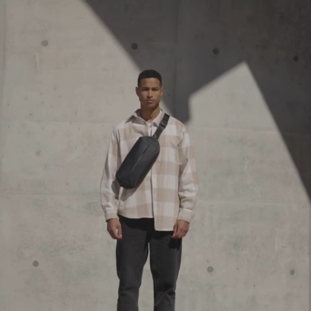 The shape of the XB:01 is designed to expand when needed. Additionally to your everyday essentials it allows space for bulkier items (like a water bottle) but still wears sleek.