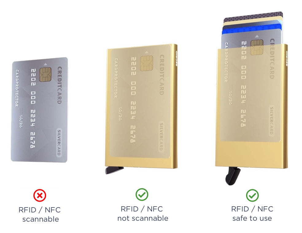 The Cardprotector is the core of each Secrid wallet, and works as a minimalistic, slim card case on its own. The patented mechanism provides a simple and fast access to your cards. Push the lever and the cards slide out smoothly, ready for immediate use. The strong case protects the cards against bending, breaking and unauthorised wireless scanning. Depending on the thickness of your cards, it can hold up to 4-6 cards. You can also choose to store just one card.