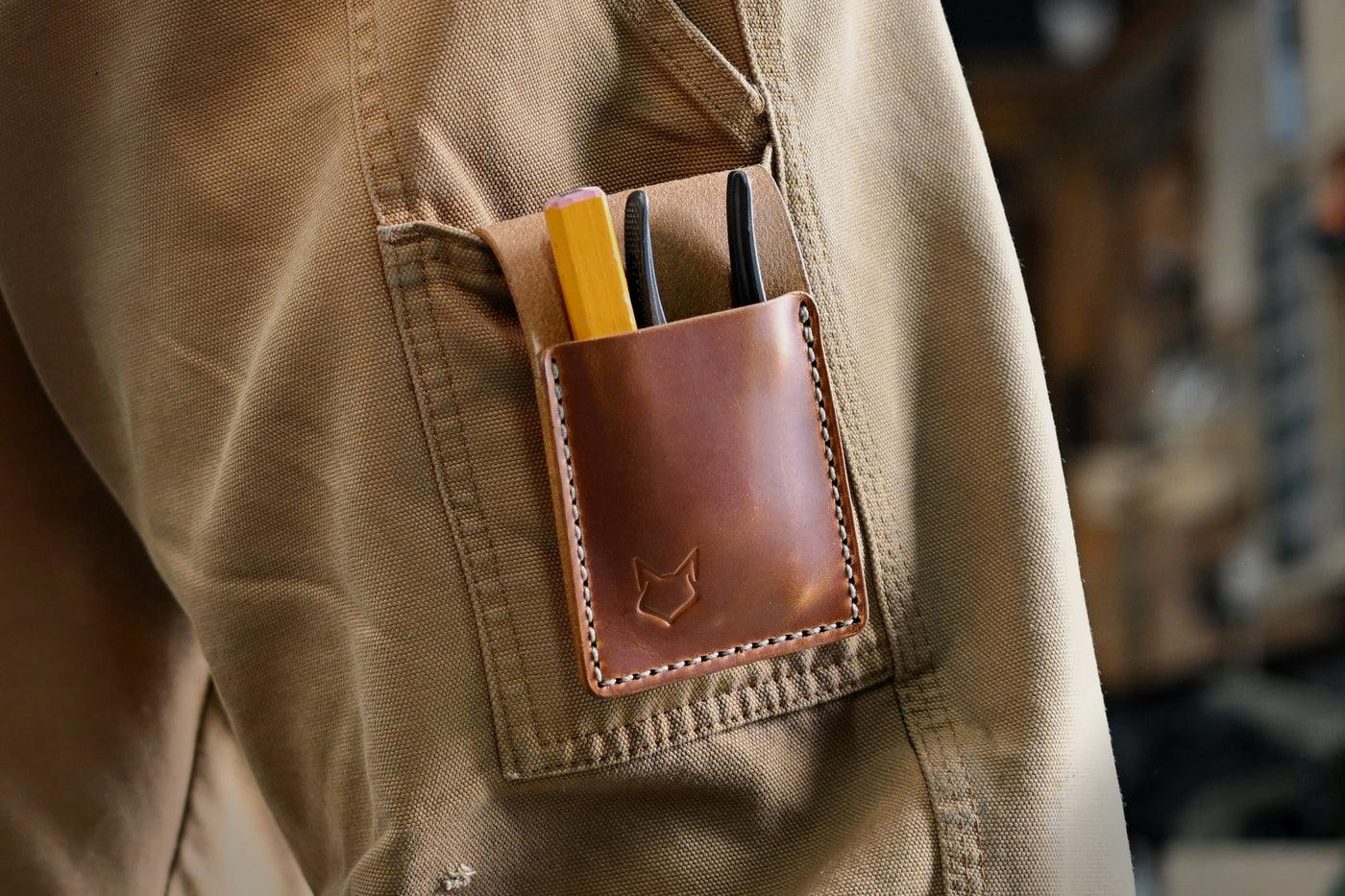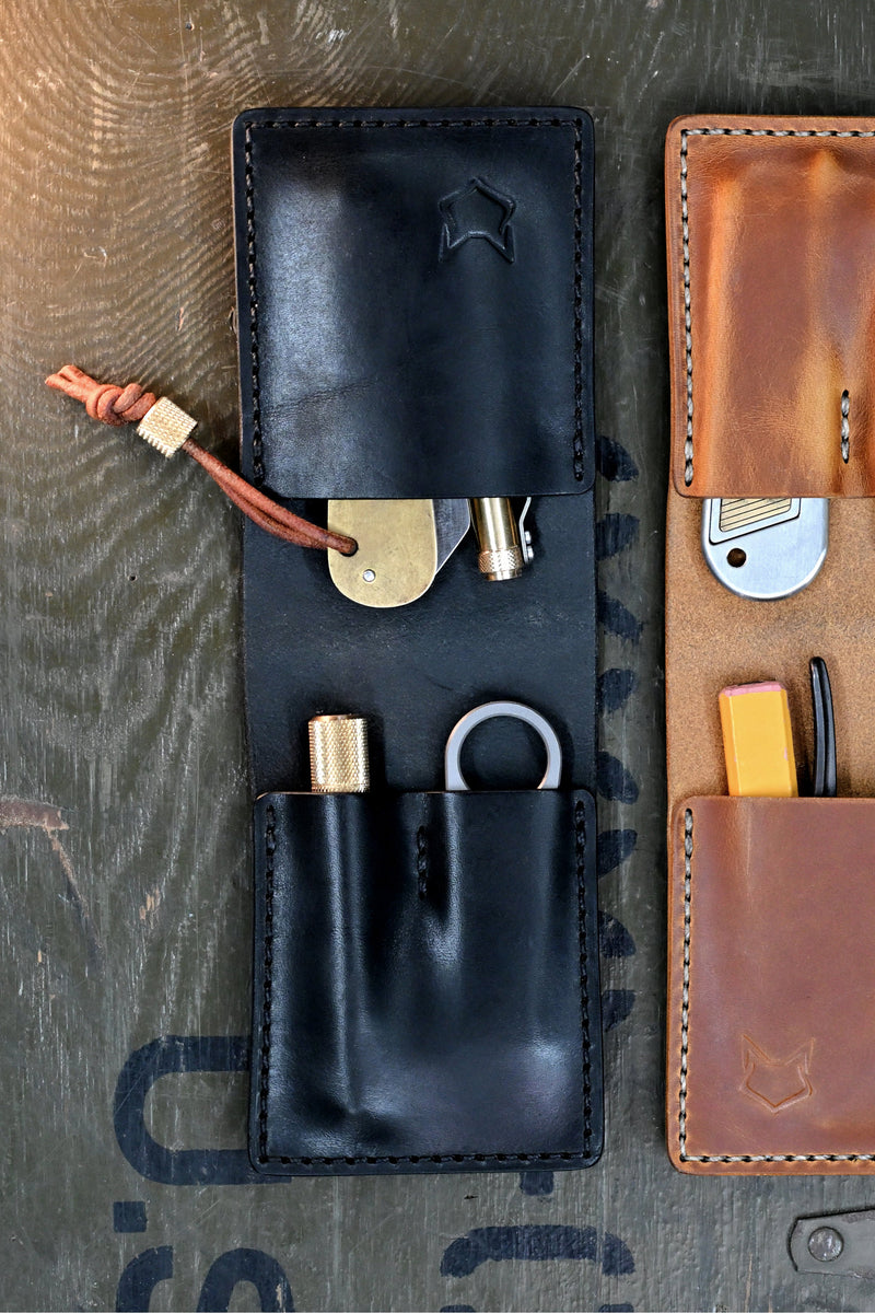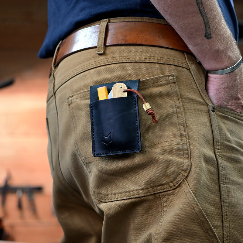 Introducing the Saddle; the alternative to the traditional tool belt, a magnetic EDC pocket caddy. Just slip it over the pocket and the magnets hold it in place, giving you transferable pocket from one trouser to another.