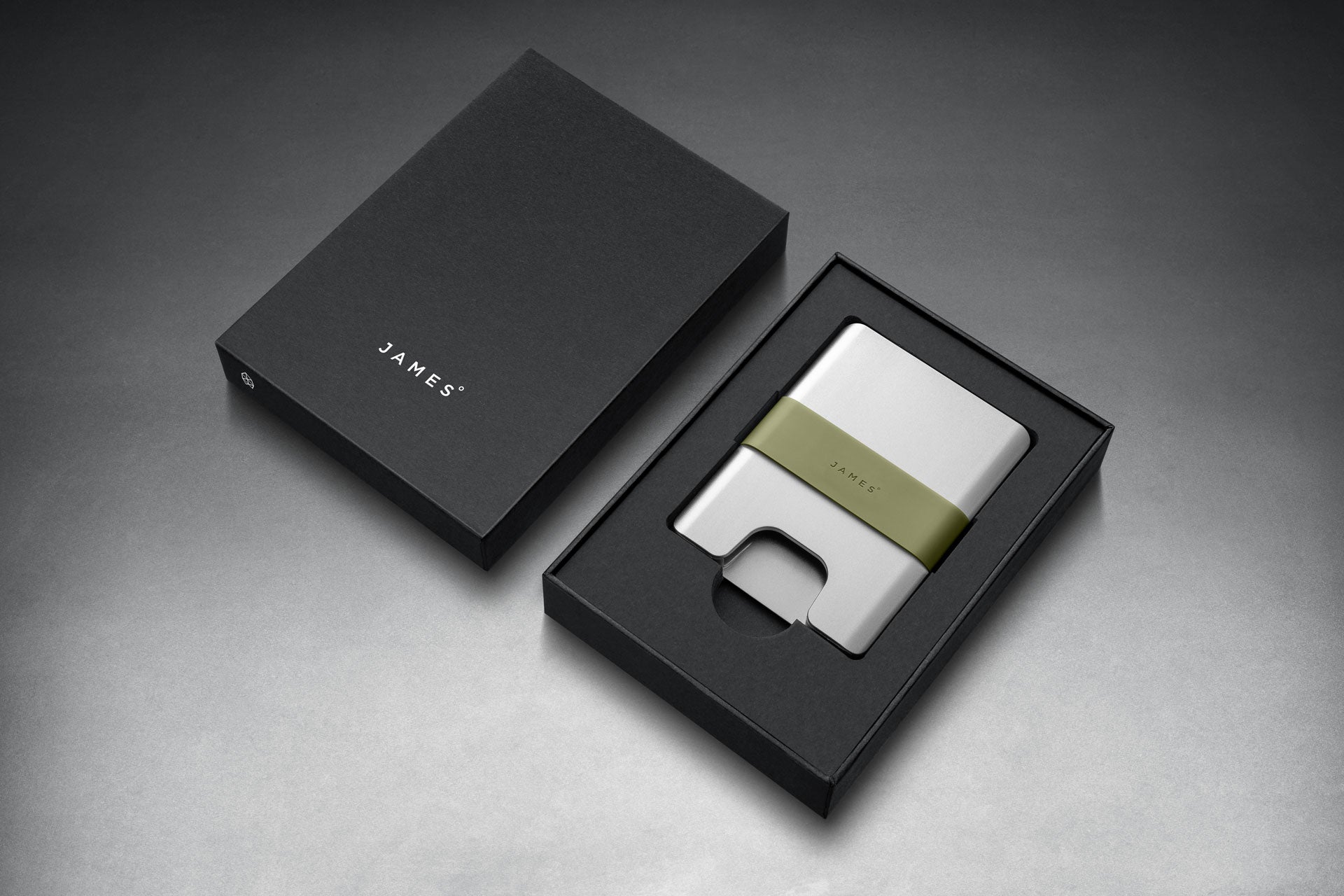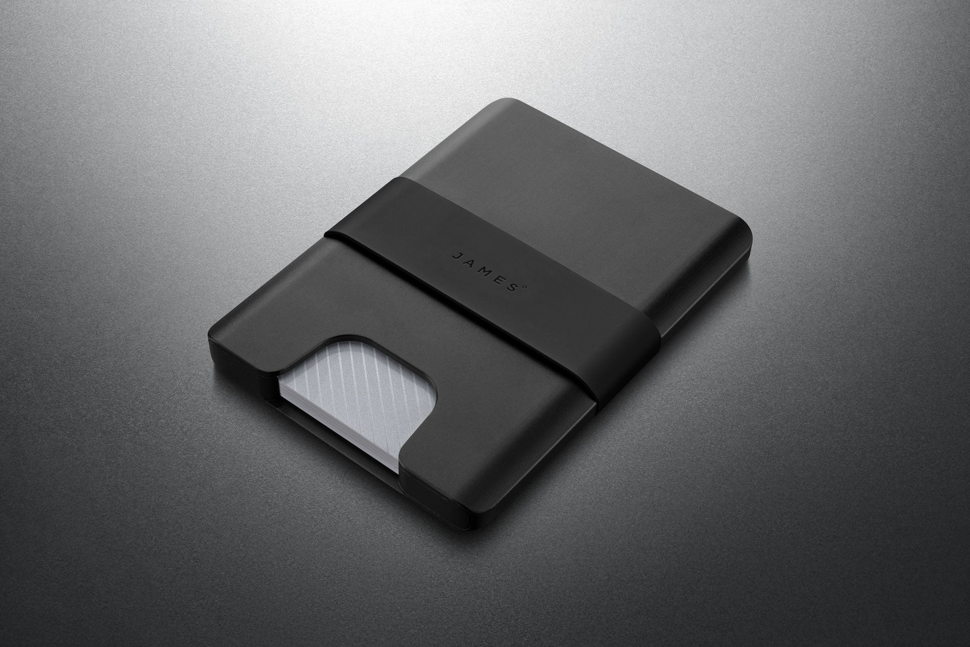 The 70A durometer silicone band is grippy but forgiving—easy to use, easy on your cards, and designed with purpose. Its dimensional form locks into a precise position on the case, proudly centering The James Brand’s signature mark.