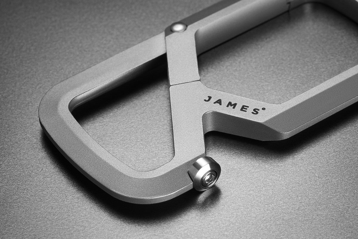 Mehlville carabiner is machined from a single block of titanium, which creates lightweight, sleek yet strong construction. It has two separate compartments: the wide opening at the top leaves plenty of room to accommodate latching onto everything, while your keys are safely tucked away and won't fall out when you unlatch the top. The custom thumb stud bottle opener takes care of the cap of your favourite beverage any time.