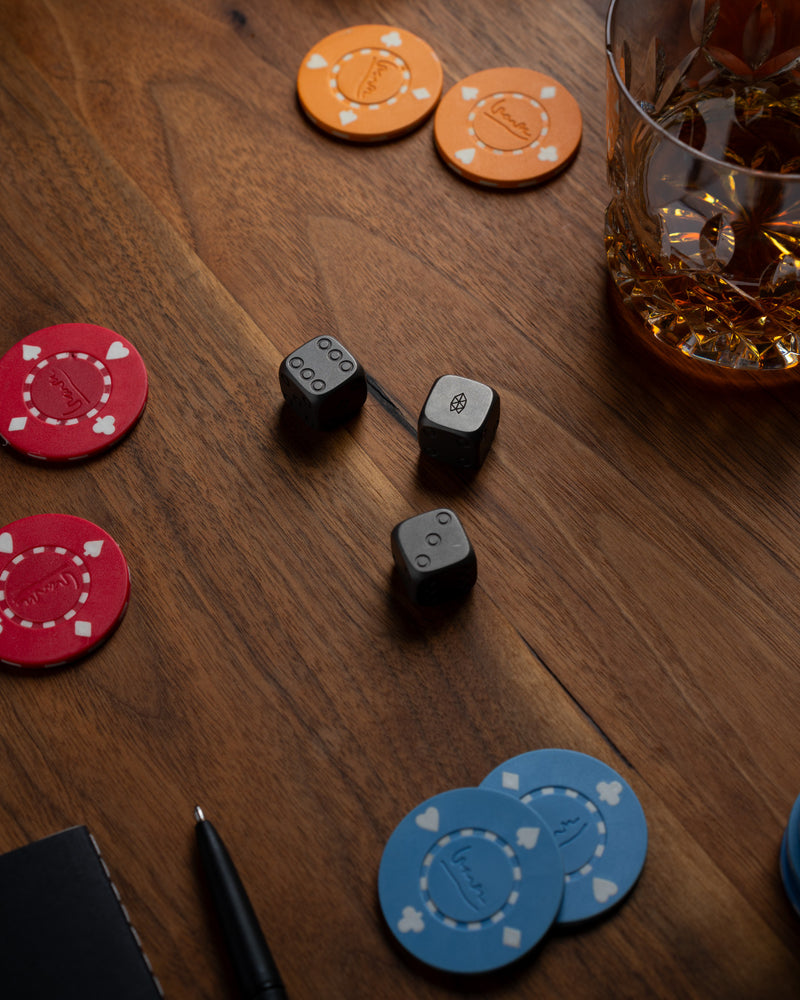 Keep the set in your backpack, truck or with your camping gear. They are great to have on hand when digital entertainment has run its course and the bottles come down. The TJB titanium dice will start conversations, but could also get you a few duckets if luck is on your side.