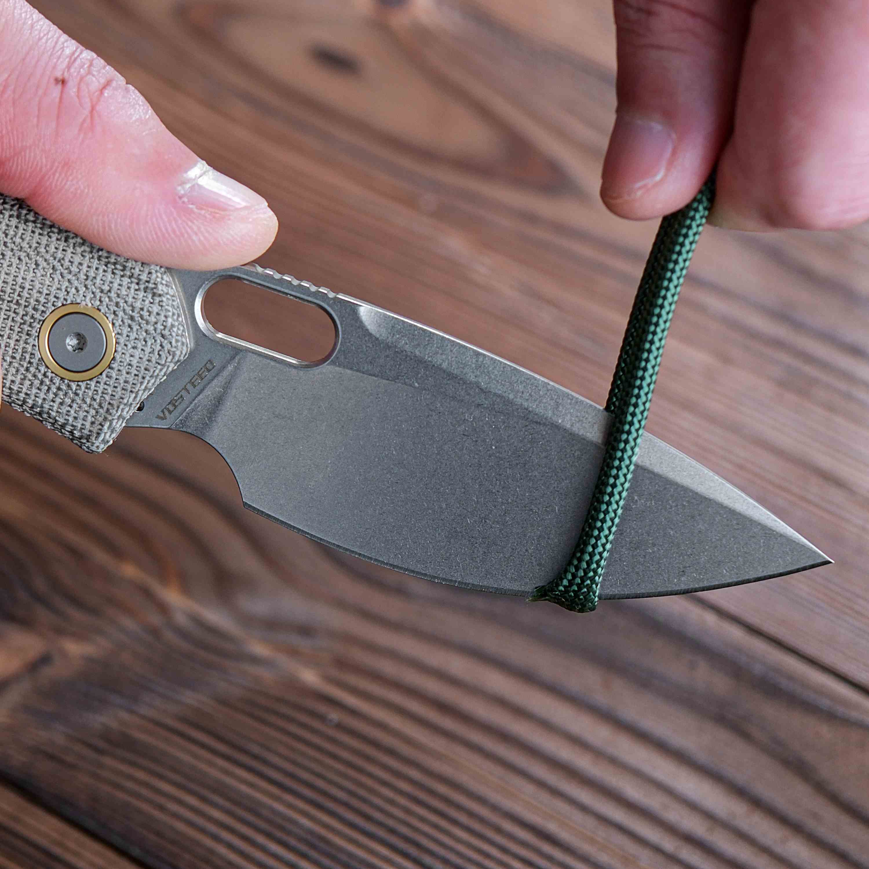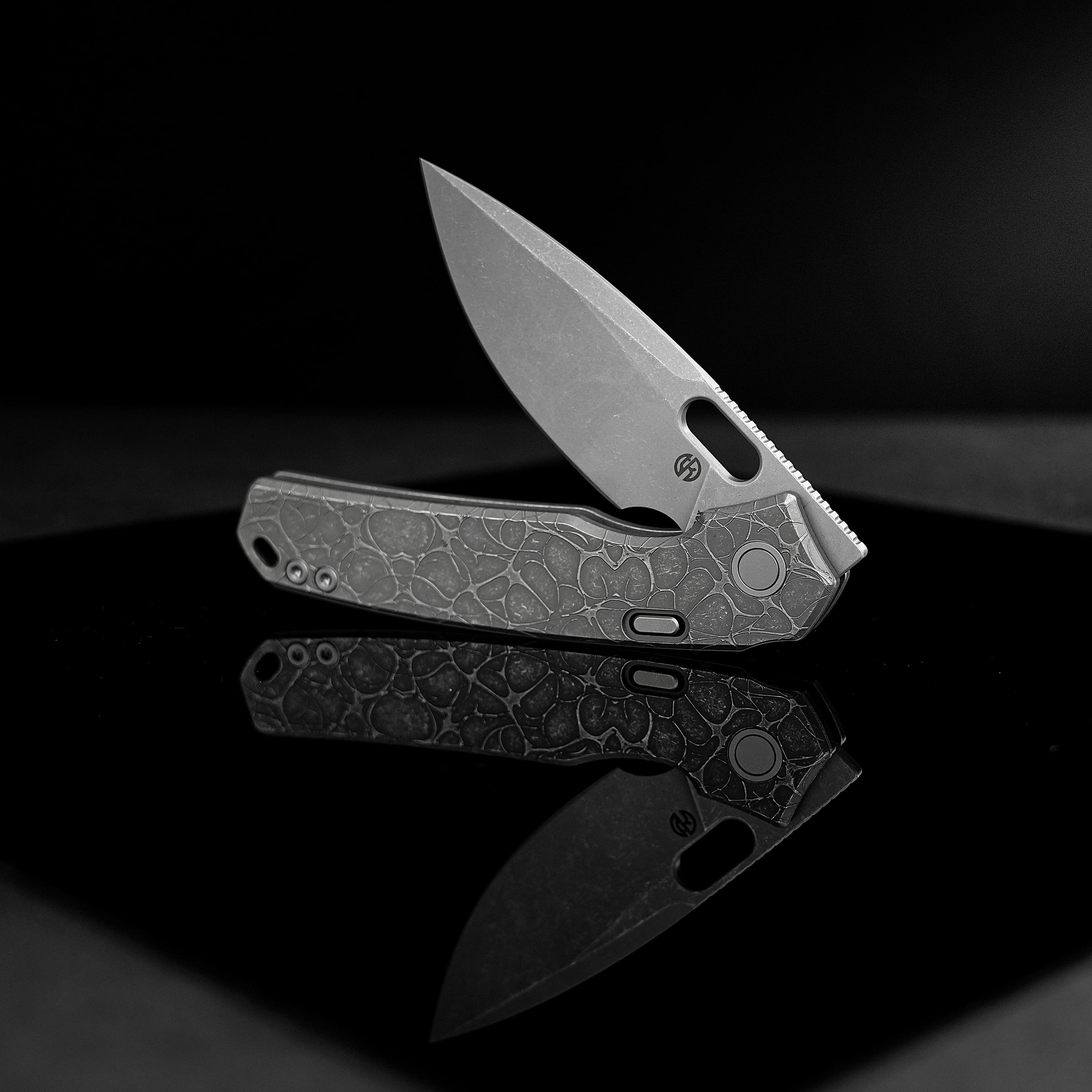 Milled from a 4 mm thick Elmax steel blank, the blade of Psyop has good wear resistance, corrosion resistance, and high dimensional stability.