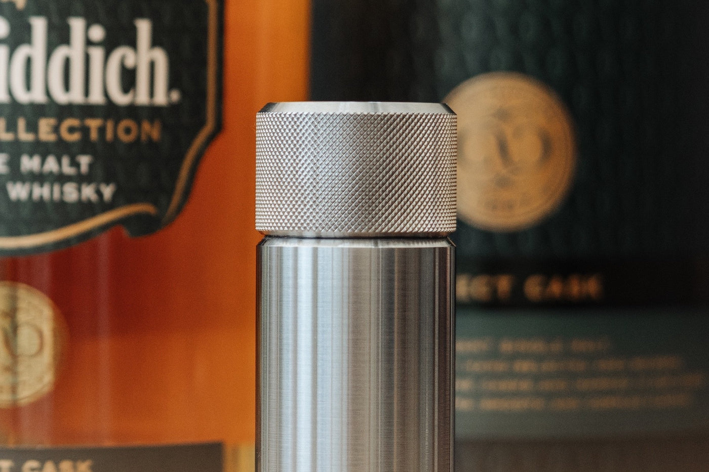 The classic hip flask is iconic. The usual shape is rectangular, with a small spout, but Wingback designed a flask that celebrates its contents in a more user-friendly, enjoyable, easy to clean and durable way. With a seamless, cylindrical design it is reassuringly robust, resilient and adventure ready. The removable base also doubles as a handy bottle opener. At a 100 ml capacity, it’s the ultimate travel companion, designed to serve you on any journey as well it does at home.