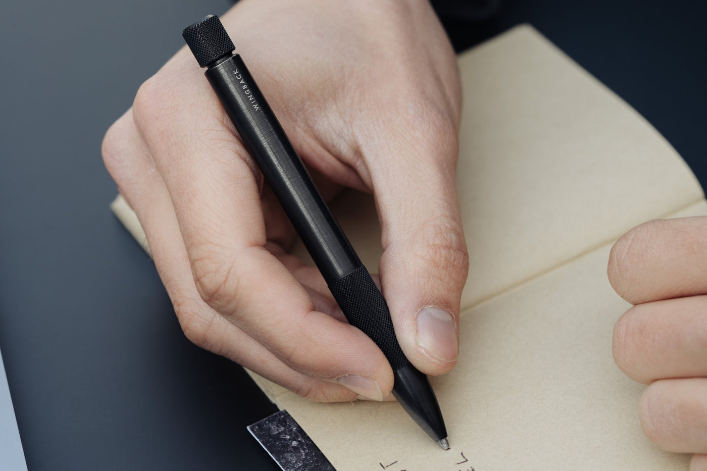 Following the "buy once" philosophy, the Wingback Mechanical Pen is designed to last for decades. Made from a solid bar of aerospace-grade stainless steel, it is reassuringly weighty in the hand with a wide diameter to reduce writing fatigue and encourage time to be taken with every pen stroke. A satisfying single handed twist locks the nib mechanism in place and every pen comes with the Fisher Space Pen® PR4 pressurized ink cartridge.
