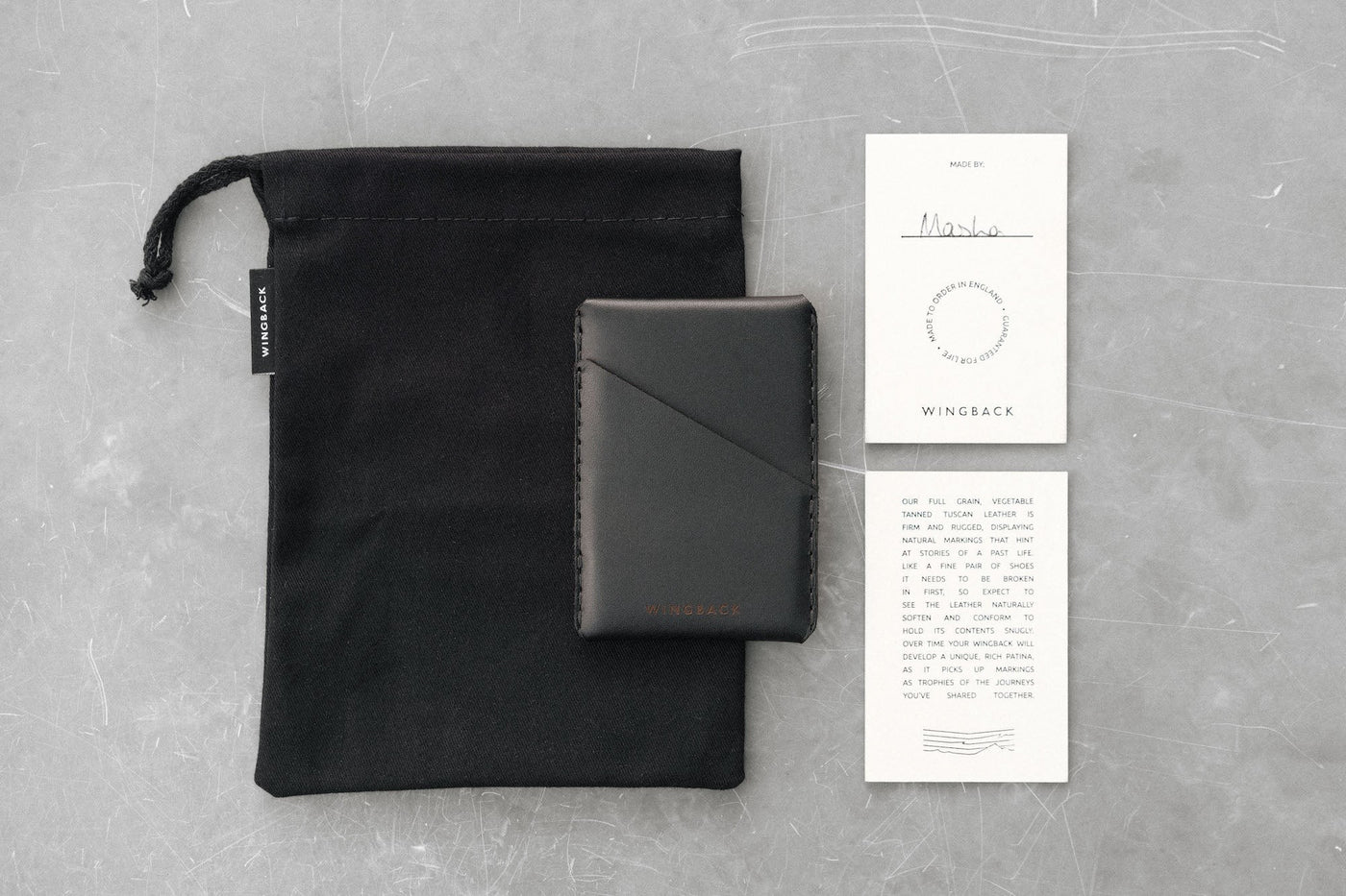 Winston Card Holder features a stainless steel leaf spring system hidden inside the card holder that will ensure its dual pockets always retain a tight fit, whether you carry 1 or 10 cards. Its symmetrical pockets also allow for fast one-handed access to your top cards when in a hurry. Bulk up your wallet, slim it down, and your cards will always stay secure. Handmade from exceptional, hard-wearing materials, the Winston Card Holder should comfortably last decades and work equally well on day one as on day 1,000.