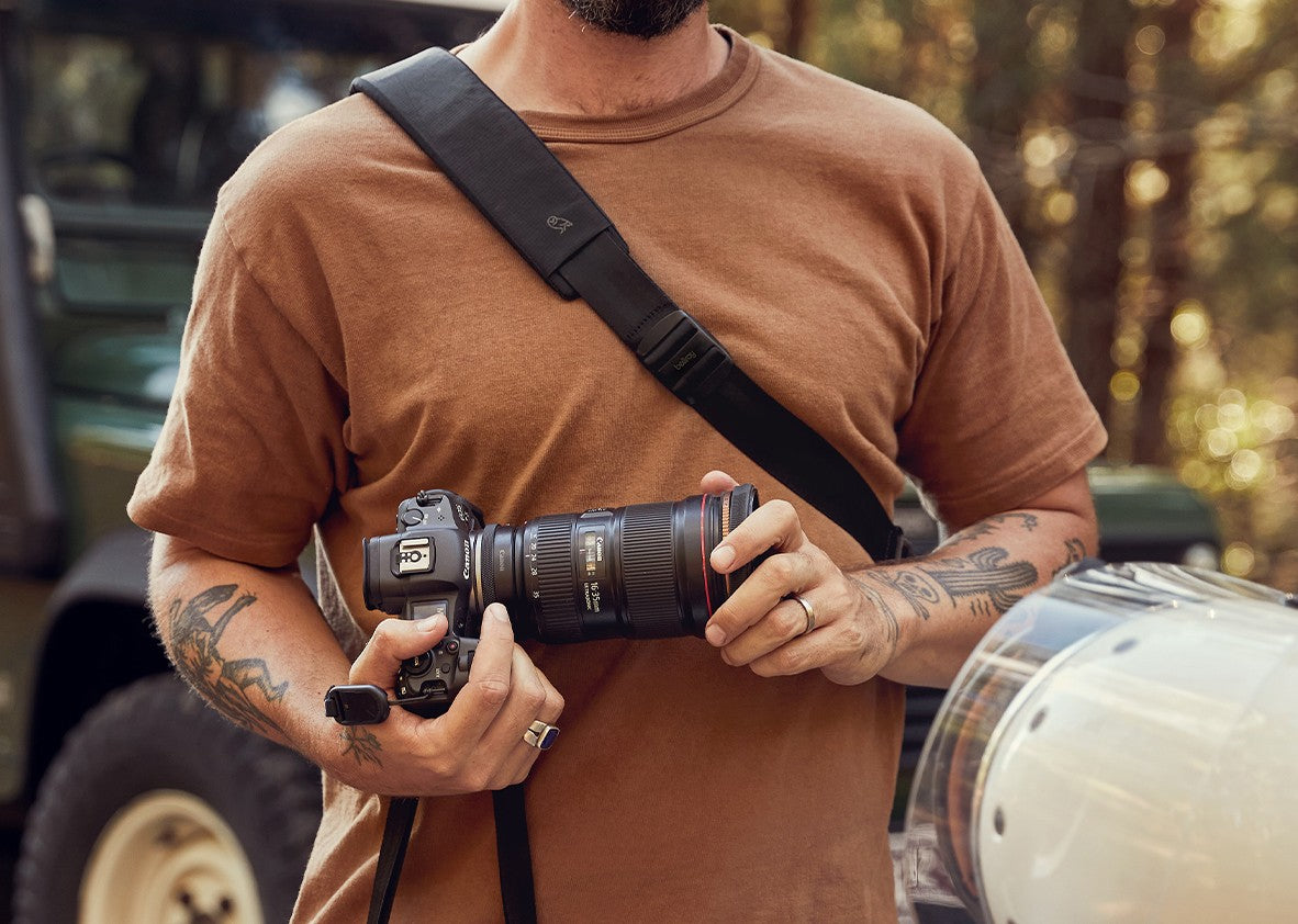 The sling format hugs your body, and self compresses around your gear, for a look that’s more everyday bag and less hardcore photographer. The quick-slide buckle lets you loosen the strap, swing the bag around and pull out a lens, then swing it back and tighten it with one hand, with a camera already in-hand.