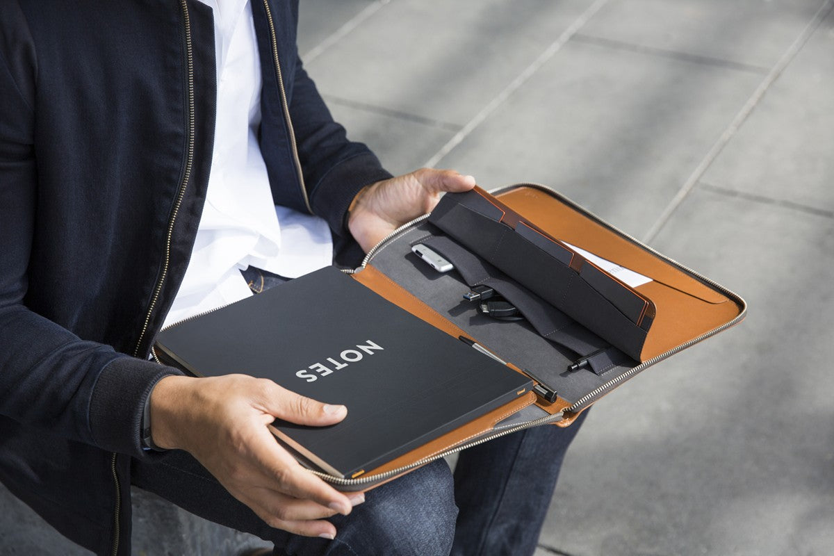 The extra spacious Work Folio A4 helps you to stay focused and peaceful even on a hectic day. It carries documents (without folding), large notebooks, pen, tablet, cables and earbuds in one place and out of sight, ready when you need them. The zip closure creates flexible format that allows you to carry more without losing the form.