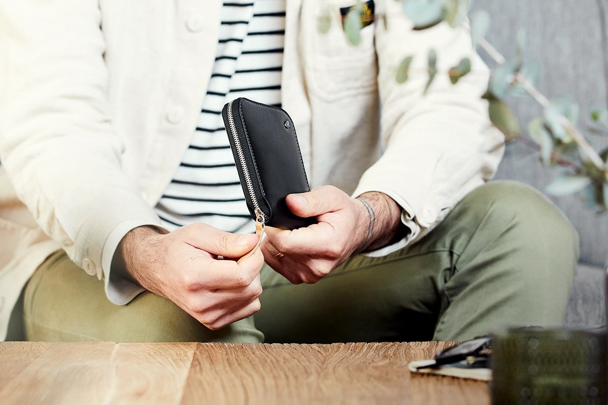 There’s room for 8+ cards, cash, coins and even a SIM, and the easy zip closure keeps everything snugly in place (even when it’s full). A hidden storage slot keeps business cards crisp, or stacks infrequently used cards, while the RFID lining keeps everything safe from skimmers.