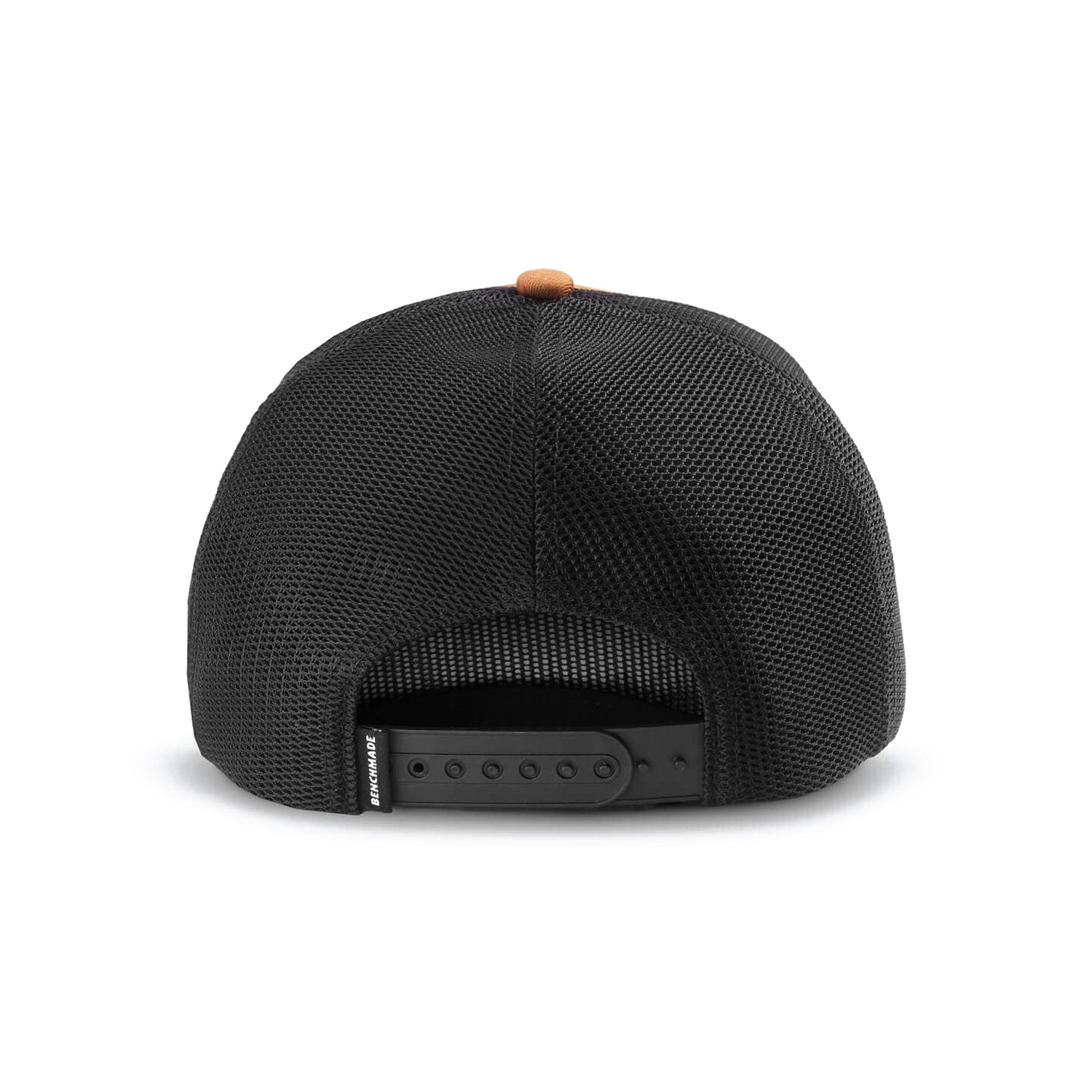 A trucker cap with a Benchmade butterfly logo. Mesh back.