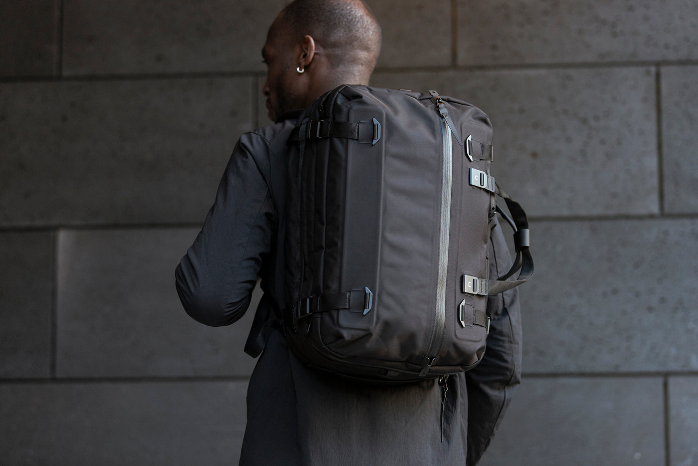 The Forge unzips and divides into two separate sections: The organization panel has a place for everything while the storage compartment is made for clothing and bulky items. For long term travel: grab the expansion zipper. The Forge instantly expands from 20 to 30 liters. If you max out the storage space, compress the Forge with the included magnetic compression straps.