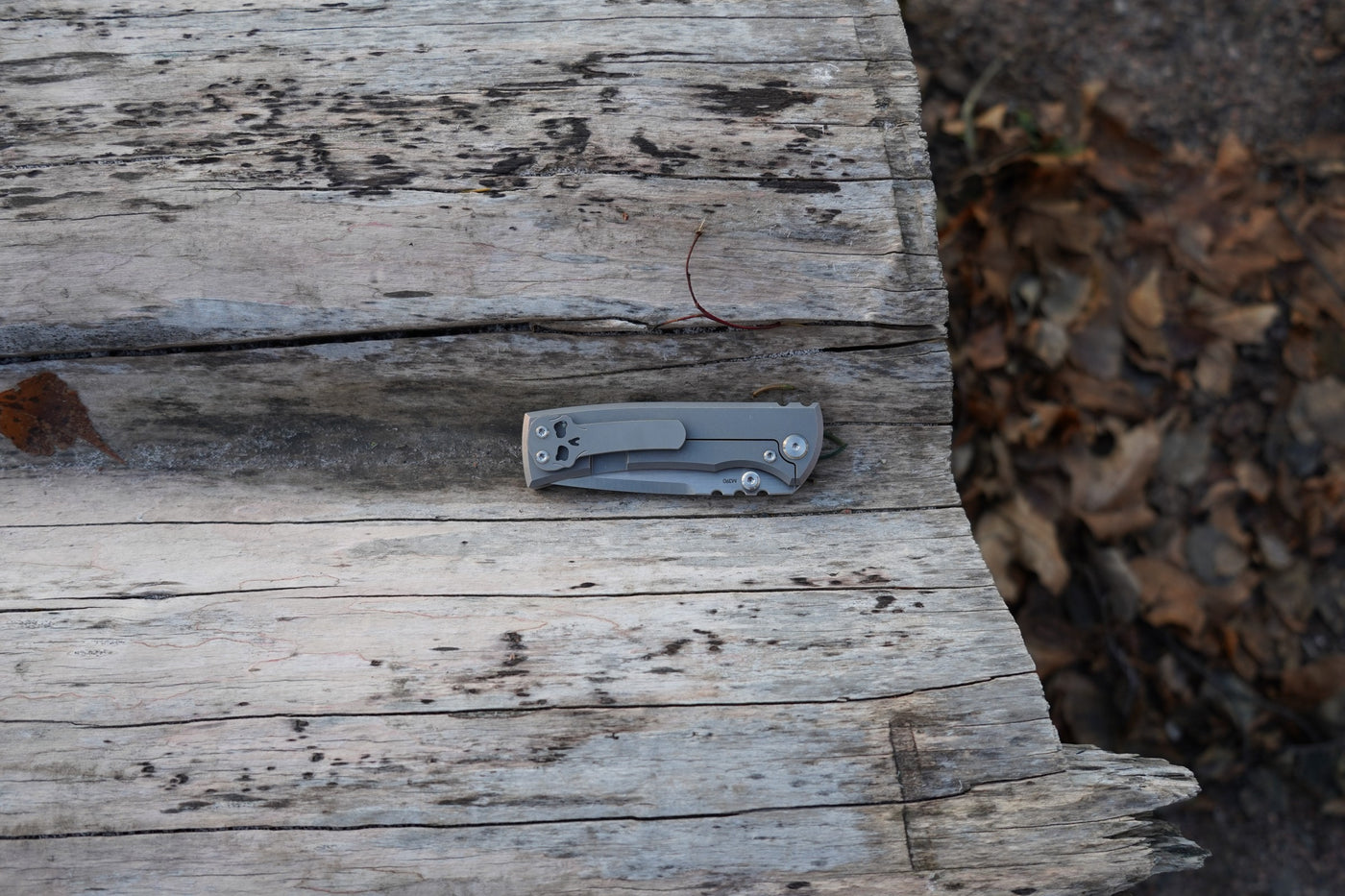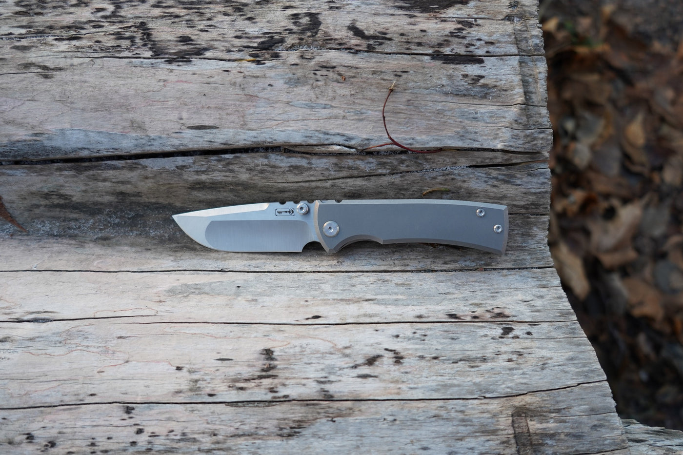 The skull-shaped pocket clip is the Chaves signature, but the knife comes with the standard titanium clip if you prefer something more minimalistic.