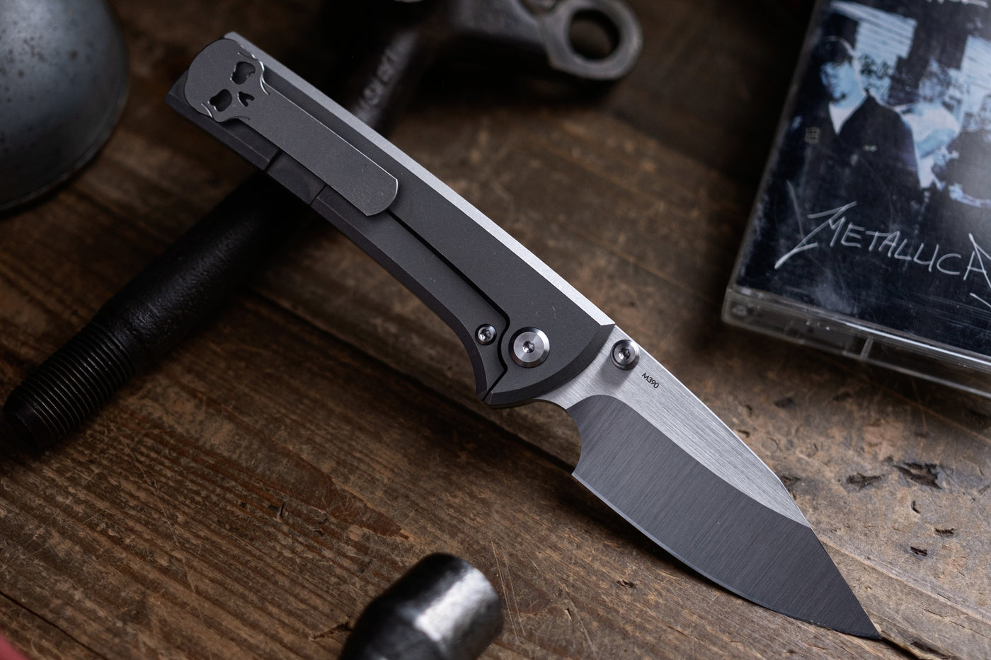 The Scapegoat Street has all the Chaves ethos, but a sleek drop/clip point blade with large finger choil makes it different from the rest. The knife features hidden pocket clip screws for clean lines on the handle, a swappable titanium clip (skull clip and regular clip included), and updated blade markings.