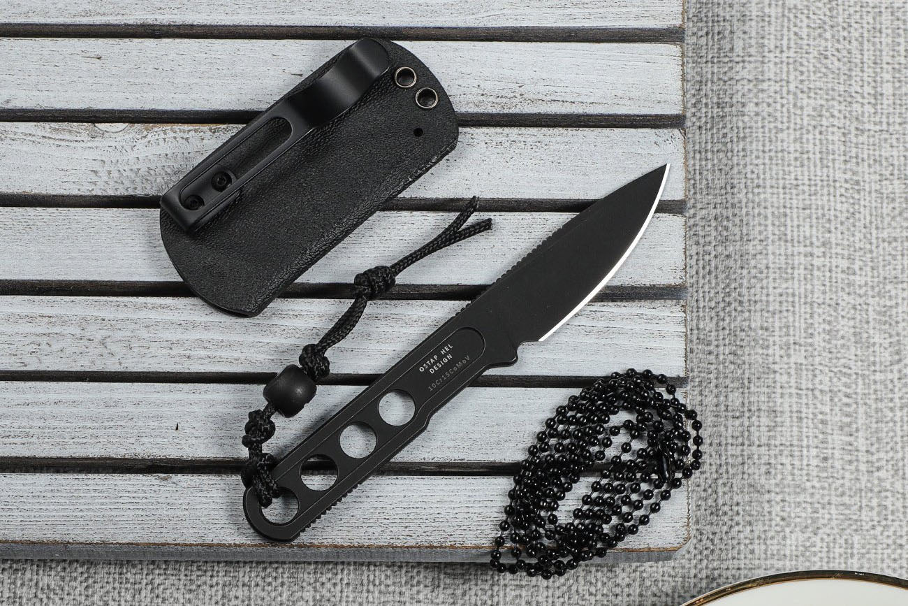 Compact and built for everyday carry, this small fixed blade knife comes with a Kydex sheath including pocket clip and a neck lanyard, giving you quick access wherever you go. The titanium bead and paracord lanyard add both style and enhanced grip, making this knife a reliable companion for all your daily tasks.