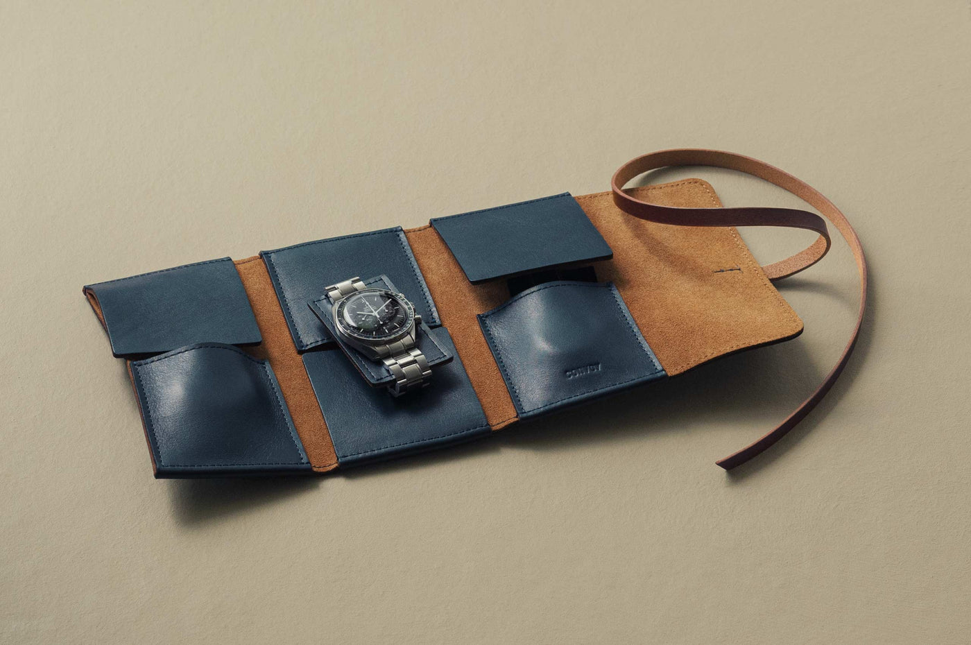 The Trio Watch Roll is a minimal yet incredibly sturdy roll, made to protectively carry three of your favourite timepieces. Each roll is handcrafted from a single panel of buttery smooth Italian full-grain Nappa leather and fully lined with soft Italian waterproof suede. The three pockets are sewn in alternating directions which allows your watches to be neatly and compactly stacked when rolled up, perfect for tucking into safes or drawers.