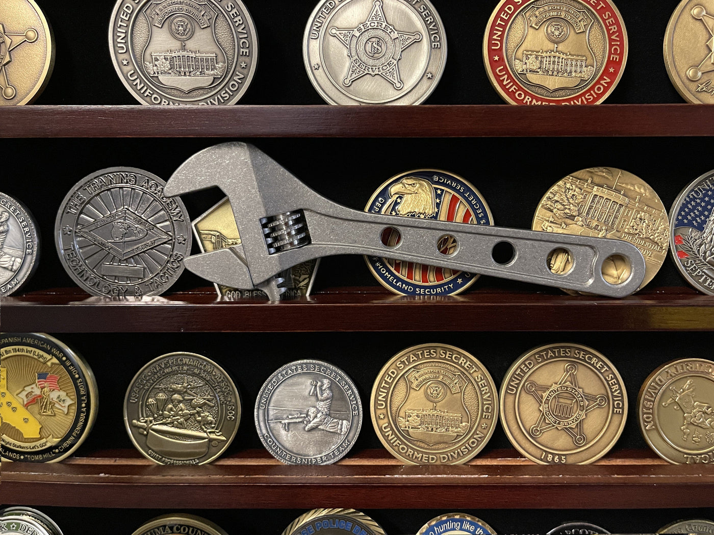 Members of the U.S. military Explosive Ordinance Disposal teams keep asking CountyComm to make lightweight, non-magnetic adjustable wrenches for working on magnetically sensitive devices, and this is what they provide them. This 6-inch model is a full-size titanium wrench with a jaw opening of 1,9 cm. Five tether holes let you attach the lanyard of your choice.