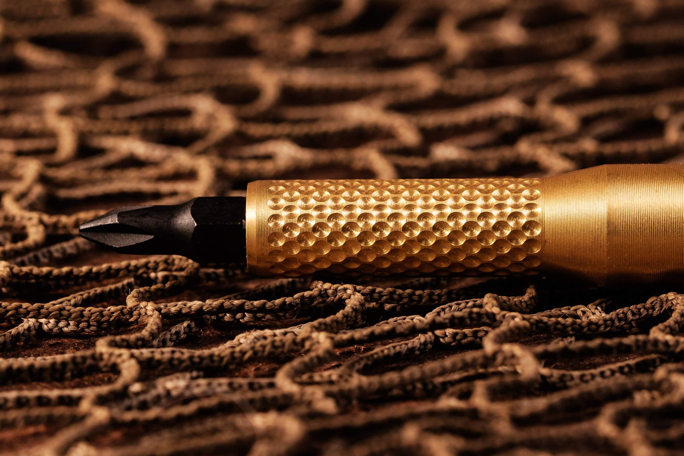 The brass Pen Driver belongs in every technician's pocket. It's lightweight, feels as good as it looks, uses standard 1/4" bits, and stores 3 extras in the handle. Comes with four standard black titanium dual nitride coated bits, but you can replace them with your mission-specific bits.