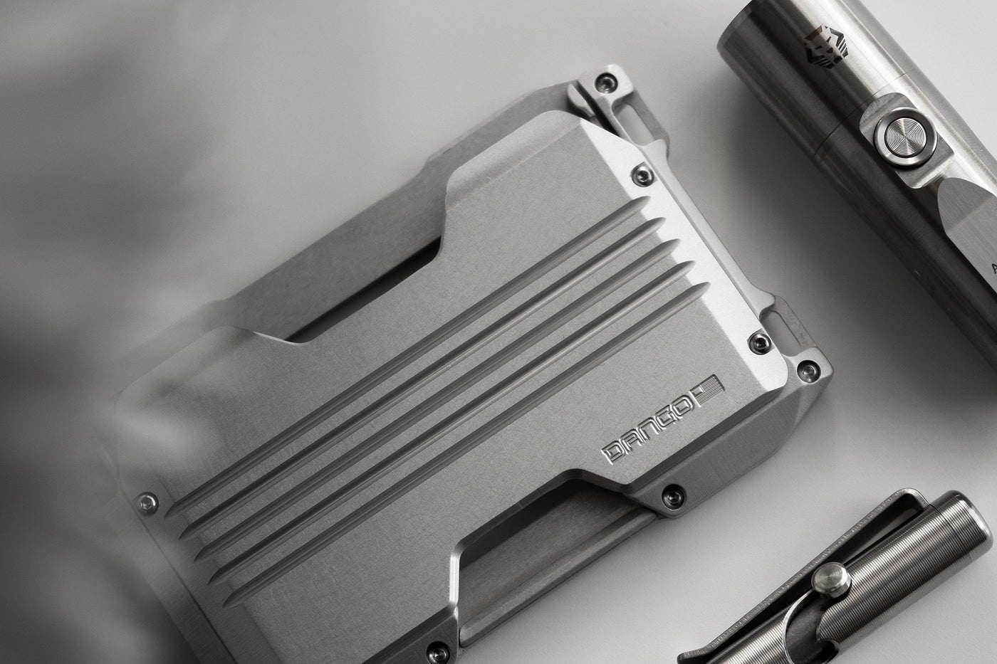The A10 wallet is made of machined 6061 aerospace grade aluminum and anodized to perfection. It is equipped with Dango’s popular and unique patent pending quick release rail mechanism on both sides of the wallet that allows easy access to cards while keeping them securely in place. On one side of the chassis is a horizontal cavity holding up to 4 cards that is protected by a removable aluminum RFID plate. On the other side is a single card, vertical oriented cavity meant for displaying identification, badges and any cards that needs scanning; perfect for accessing secured buildings and boarding public transportation.