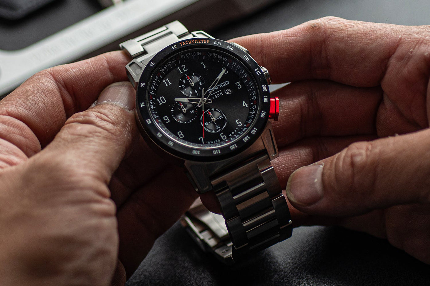 CR-01 Chrono Watch features a 45 mm stainless steel case with italian leather or metal straps. The sapphire crystal glass is scratch resistant and luminescent dial tells you the time even in the dark. The Swiss Ronda movement ticks inside. The patented interchangeable lugs makes it easy to switch the strap on the fly.
