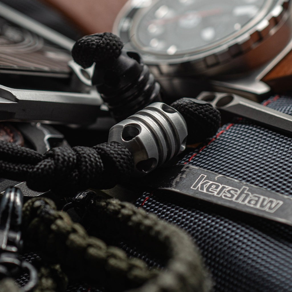 The Dango bead is paired with a 61 cm black 550 paracord lanyard. In addition, with multiple holes designed on the Dango Bead, you can get creative with weaving patterns and combine your weaves with both 550 and 95 paracords. Dango bead has 6 mm main hole and 8 pcs of 3,5 mm secondary holes.