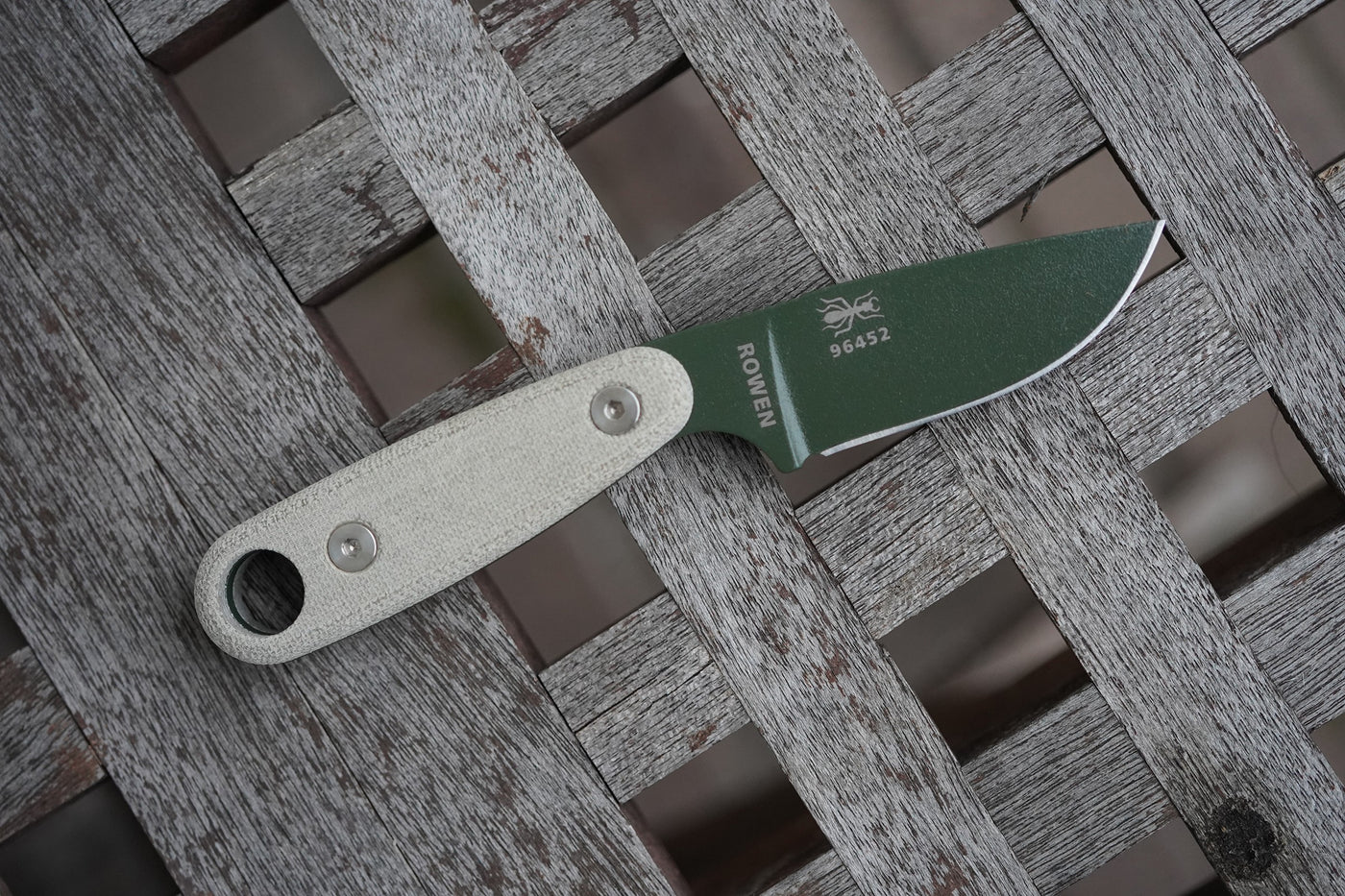The Izula-II is a compact fixed-blade knife that's easy to carry. Full-size Micarta handle scales make it capable of doing big work. Comes with a durable black injection molded polymer sheath with a removable ambidextrous clip plate. Blade finish textured powder coat except for the Black Oxide model. Made in the USA, unconditional lifetime warranty.