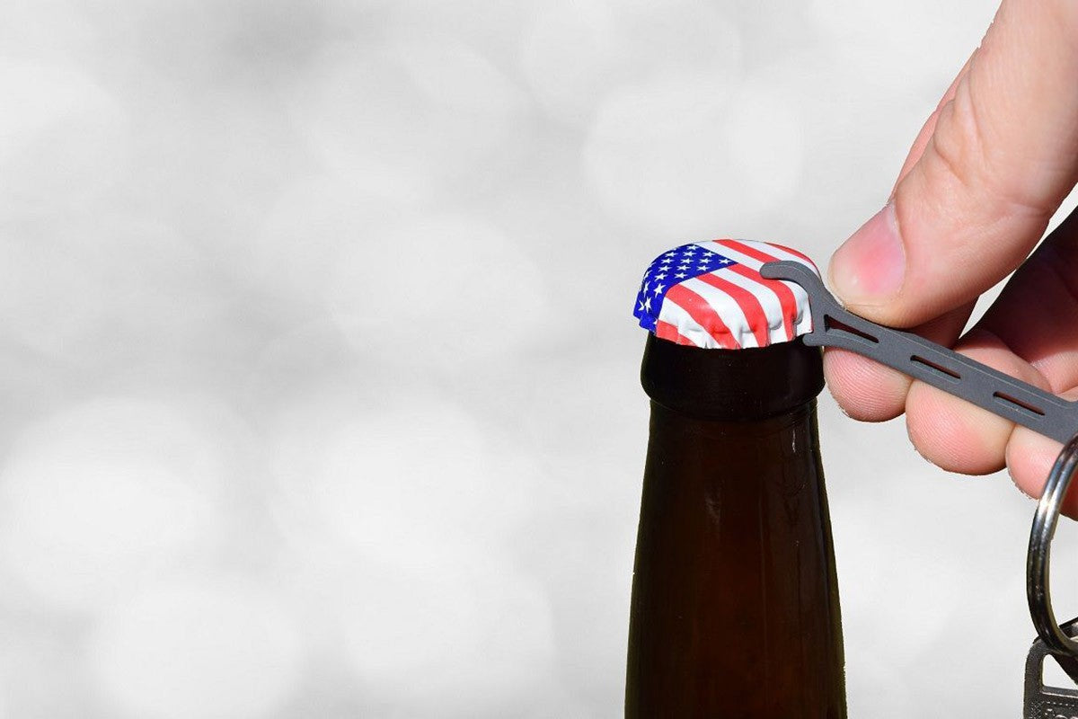 Brew Soldier bottle opener is about the same size and thickness as a standard key, so it stays camoflaged until called into action. The Grade 5 Titanium construction provides the strenght and lightness needed. Proudly made in the USA.
