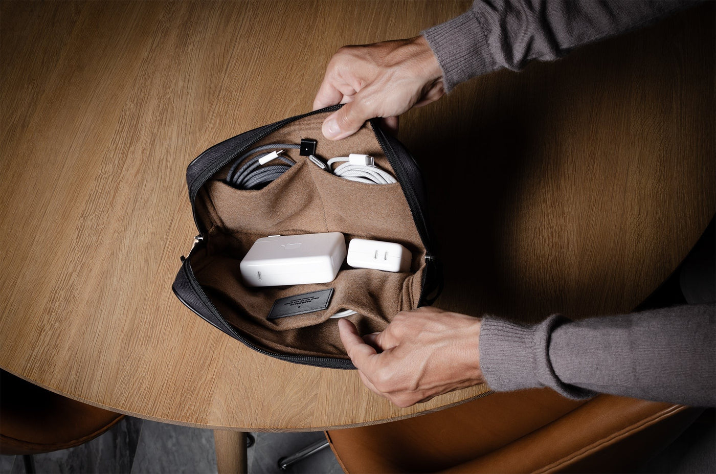 Don’t we all have "that cable drawer” in our homes? Messy and tangled up these cables live a chaotic life without guidance. You are in charge of these guys so let’s help them find a place in society where they can zip up, feel connected, and recharge for their next outing. A hardgraft no-brainer design with thoughtful details and future-proof, sophisticated high-performance materials.