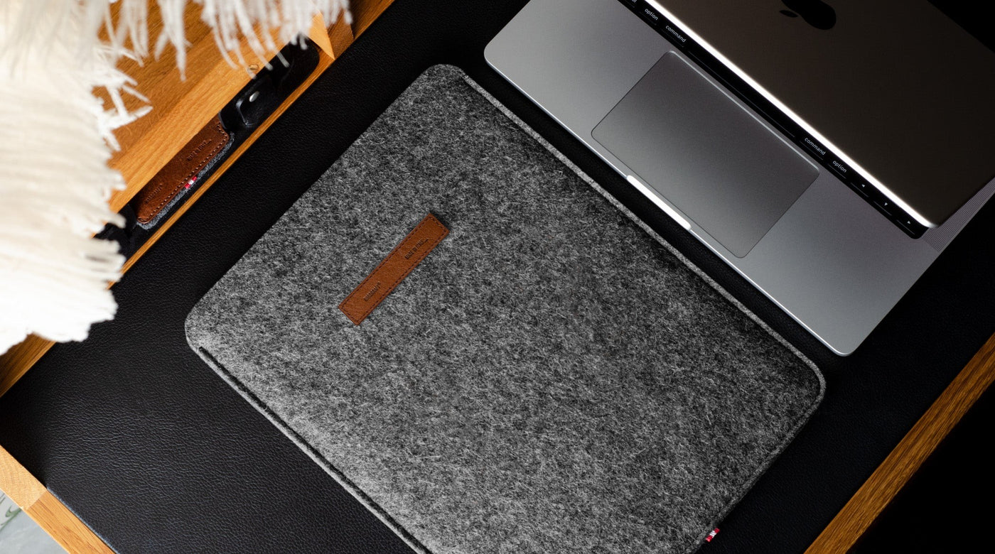 The snug fit Less is More MacBook Pro Sleeve is made of felted wool and features a rich veg tan leather accent. Fits the new 14" MacBook Pro (also accommodates the previous 13"). The thick wool protects your device from bumps and scratches.